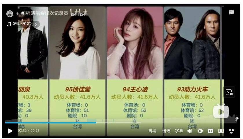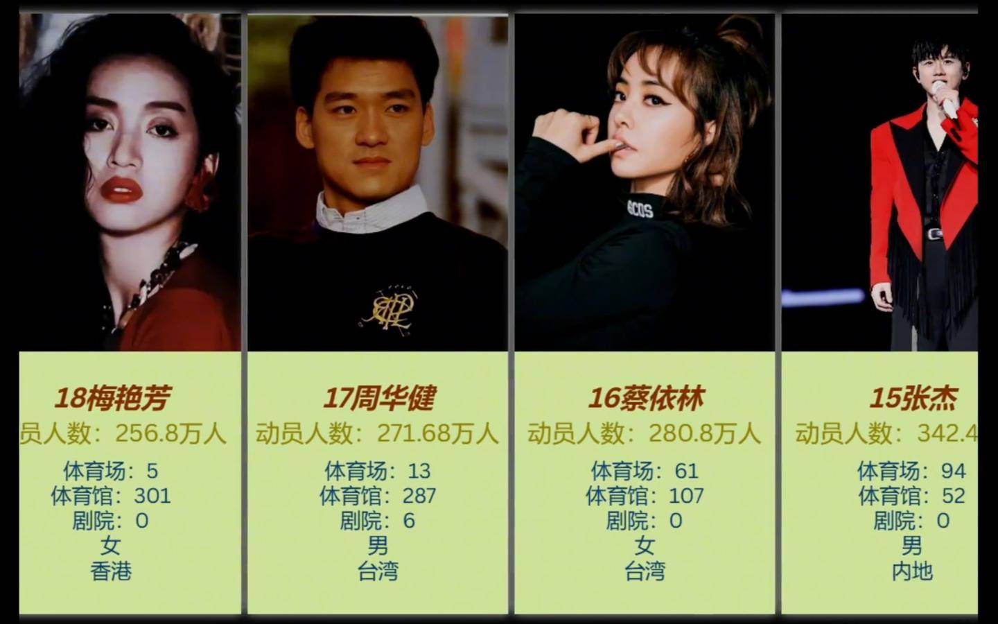 : 按照華語歌手演唱會動員總人數排行(2024年底數據)
