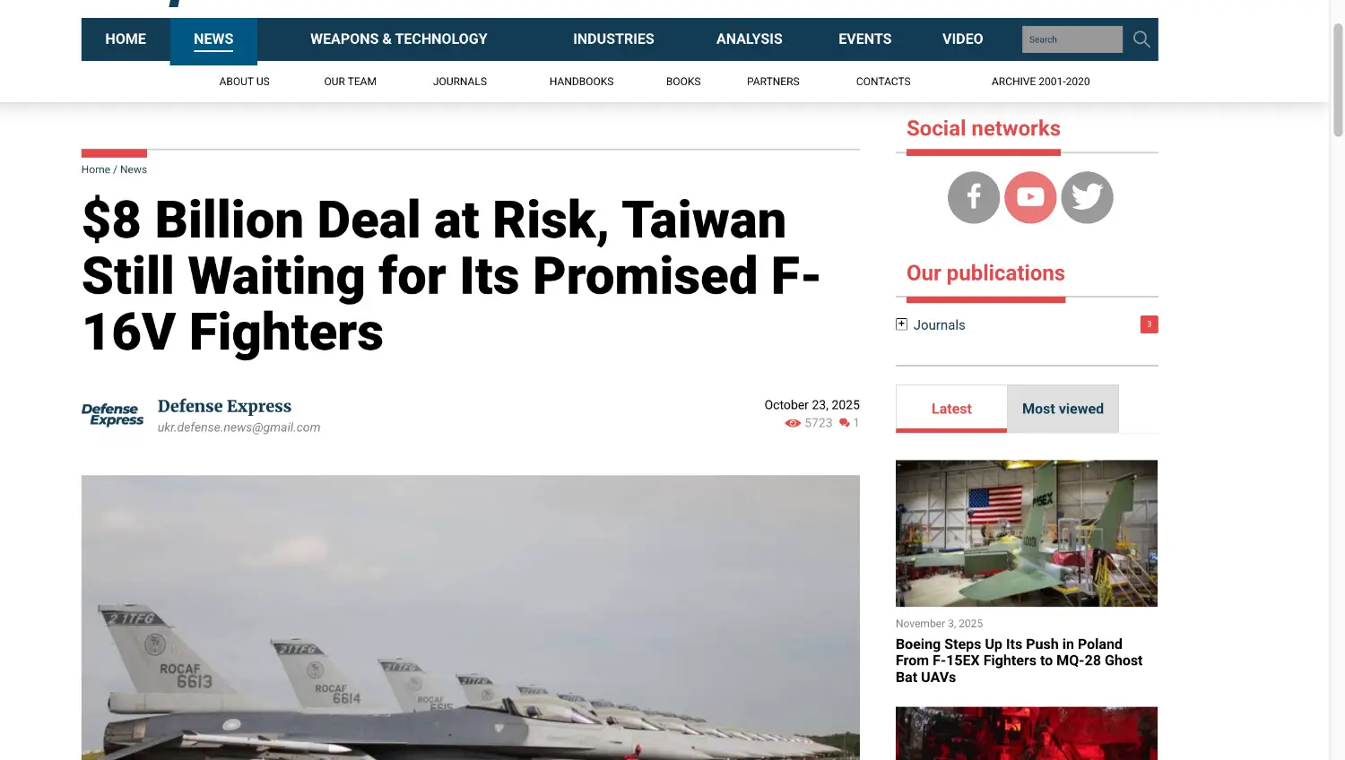 最近烏克蘭軍事媒體Defense Express也談到美國延誤給台灣F-16v