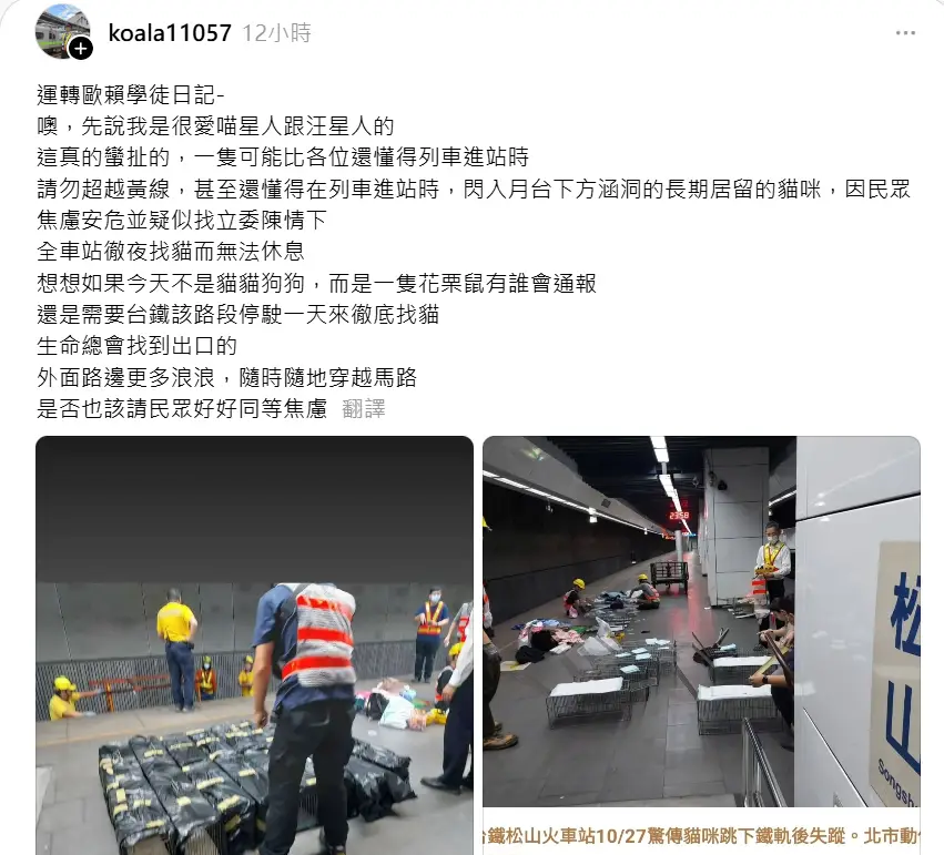 現在變成台鐵人員要熬夜加班下鐵軌找貓