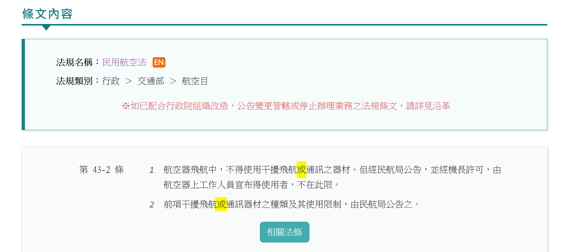 : 往台灣途中,明知於航空器關閉艙門並經航空器上工作人員宣布禁止使用起至開啟艙門止