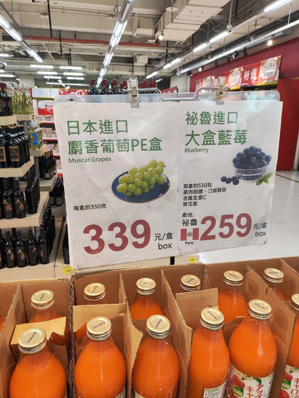 昨天在家樂福看到麝香葡萄,350克一盒要340