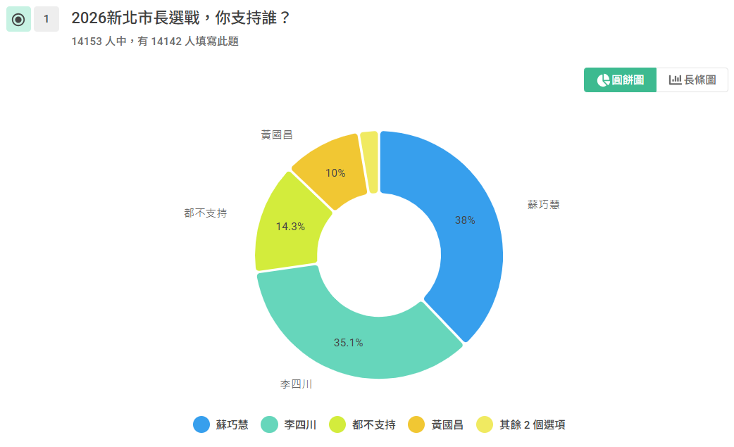 媒體《壹蘋新聞網》以「2026新北市長選戰,李四川、黃國昌、蘇巧慧、劉和然,你支持