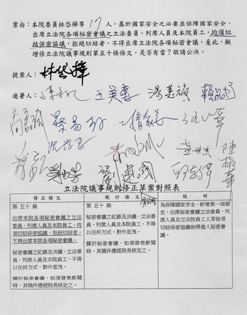 到工作人員都要切結保密協議,不切結不得開會,以維護國家安全,保密防諜從國會做起。