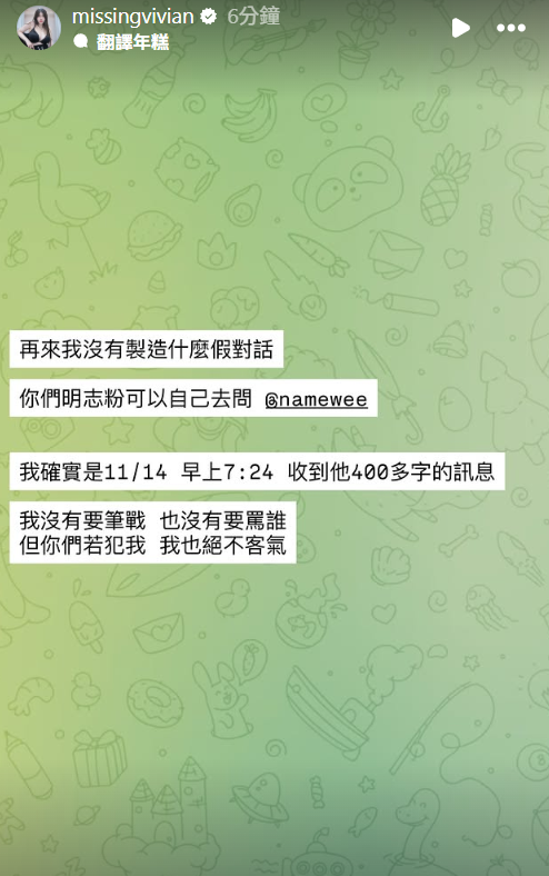 ▲謝薇安駁斥捏造假對話。(圖/翻攝自Instagram/missingvivian)