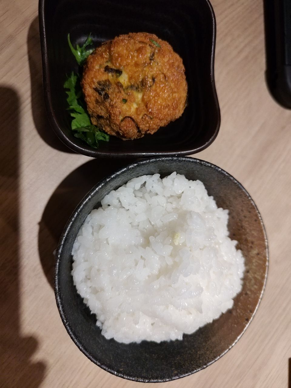 台吃烤牛舌也是被服務生端上來沒點過的炸豆腐,但是我知道有這慣例就認了
