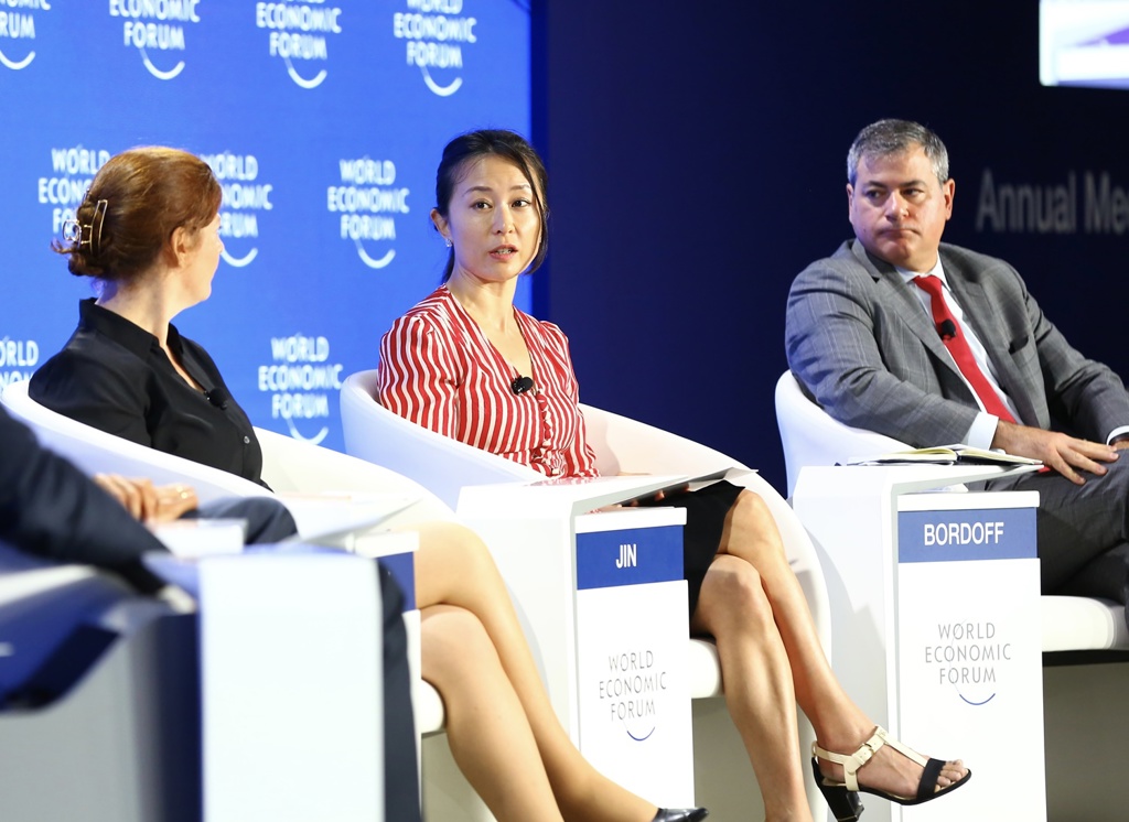 畫面為2023年6月29日,倫敦政治經濟學院經濟學教授金刻羽(右二)在達沃斯論壇上發
