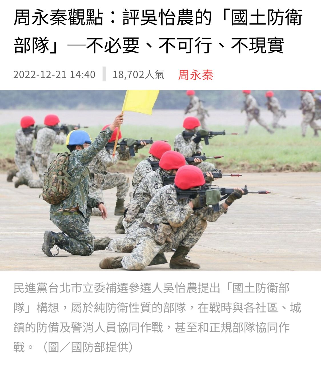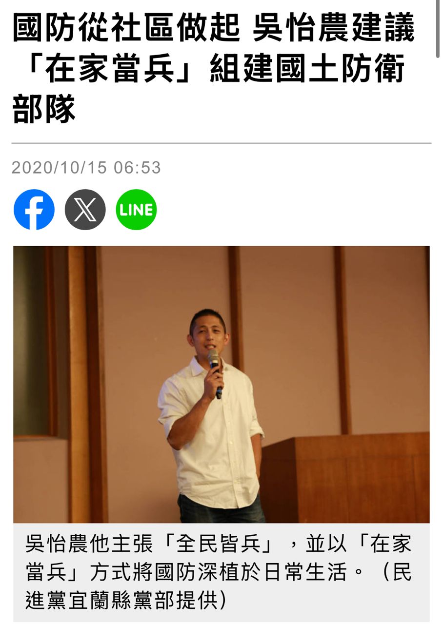 最後順道一提,吳怡農跟沈伯洋這兩人在國防的觀點上極為相似,就是搞民兵打巷戰,把