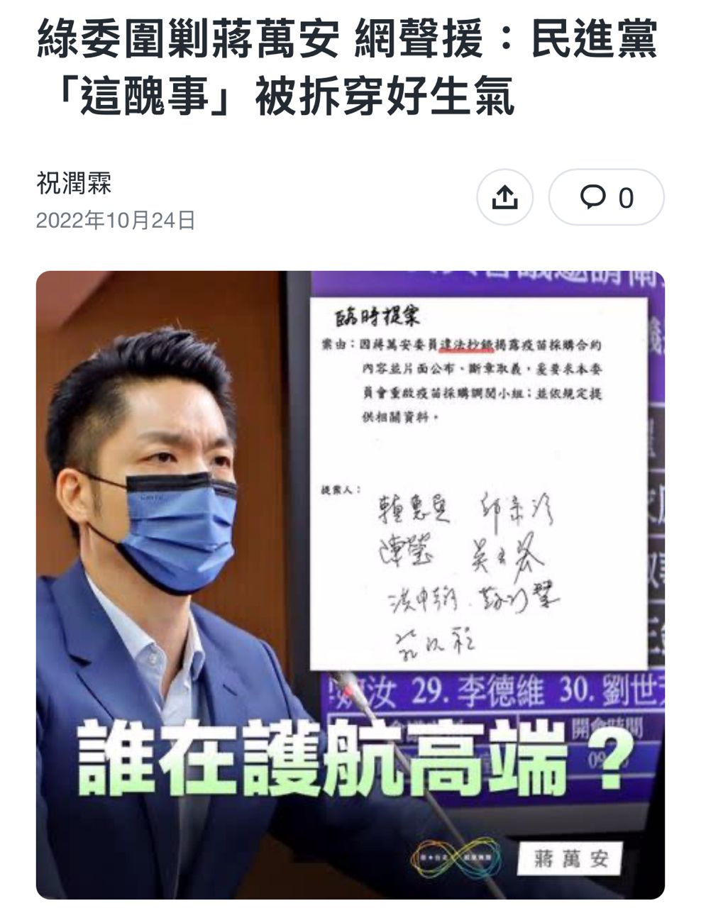 端疫苗採購價格跟保密協議,他當選台北市長的原因有很多,但蔣家後代的影響絕對排得