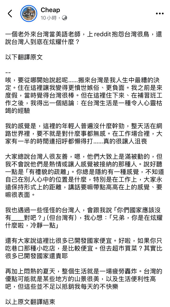 CHEAP跟著外國人說台灣很鳥 很糟糕