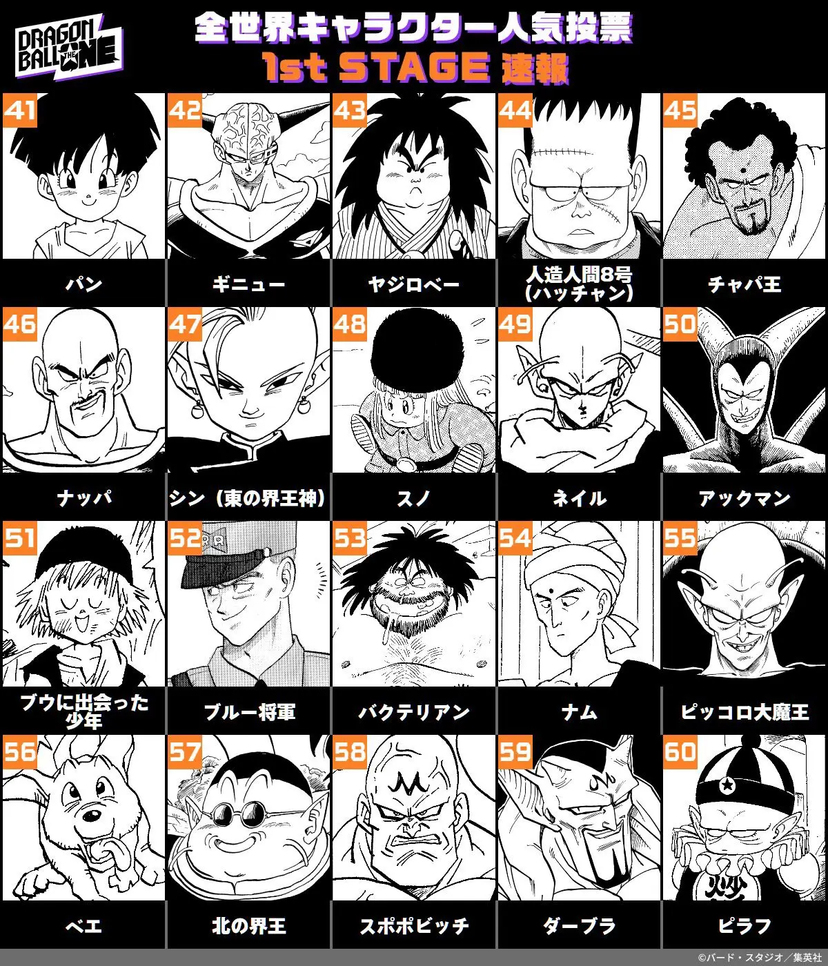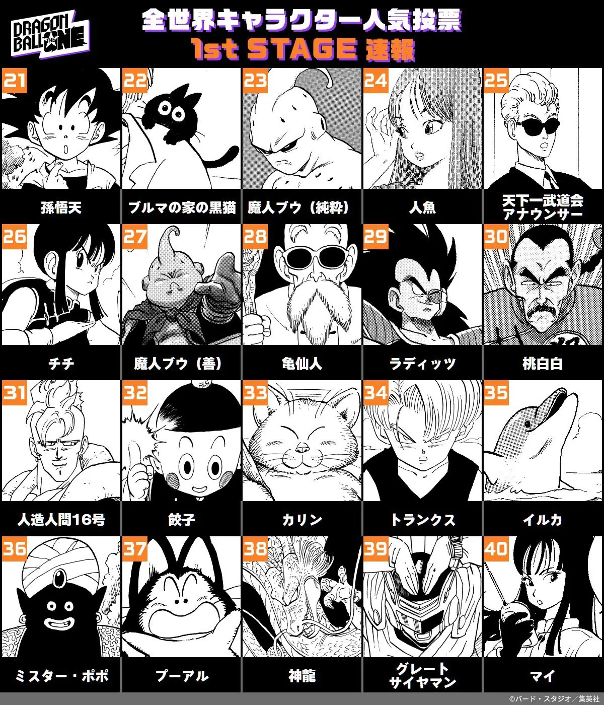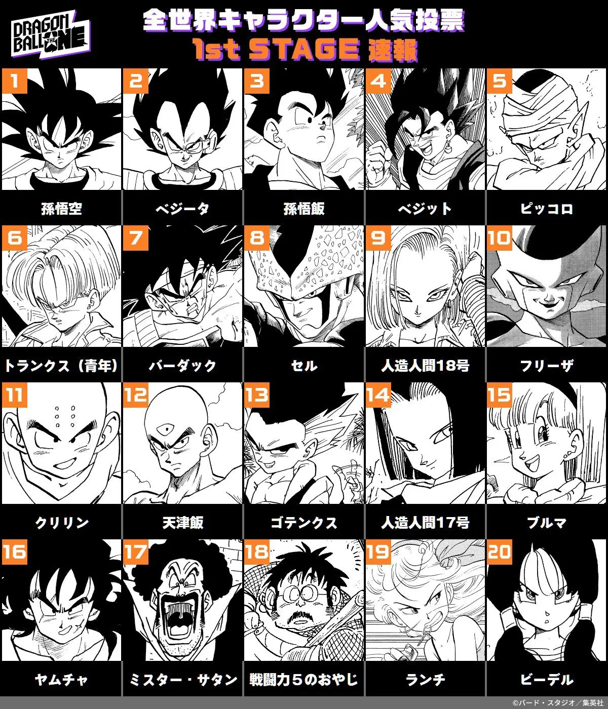Dragonball The One 全世界Character人氣投票,第一階段情況