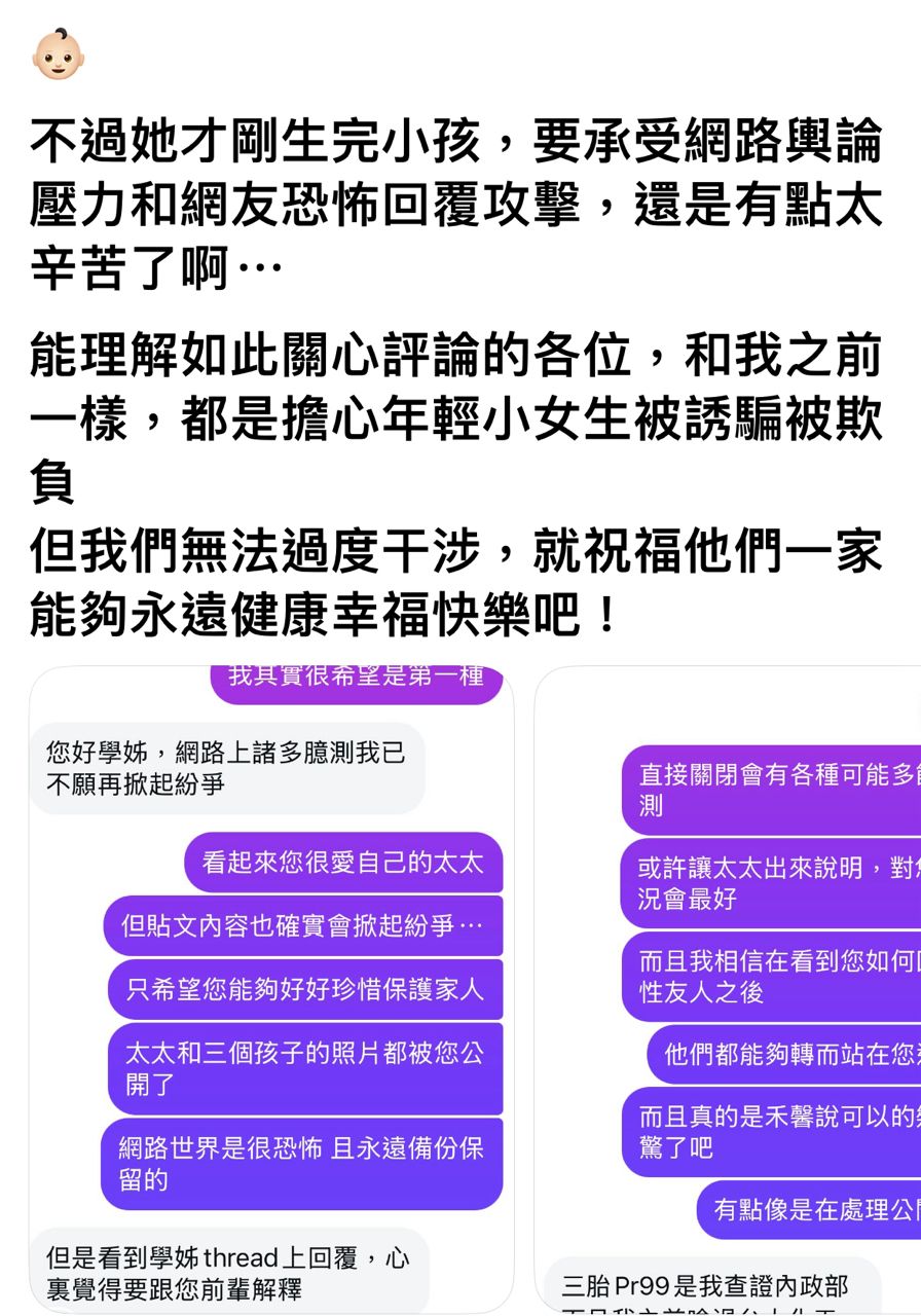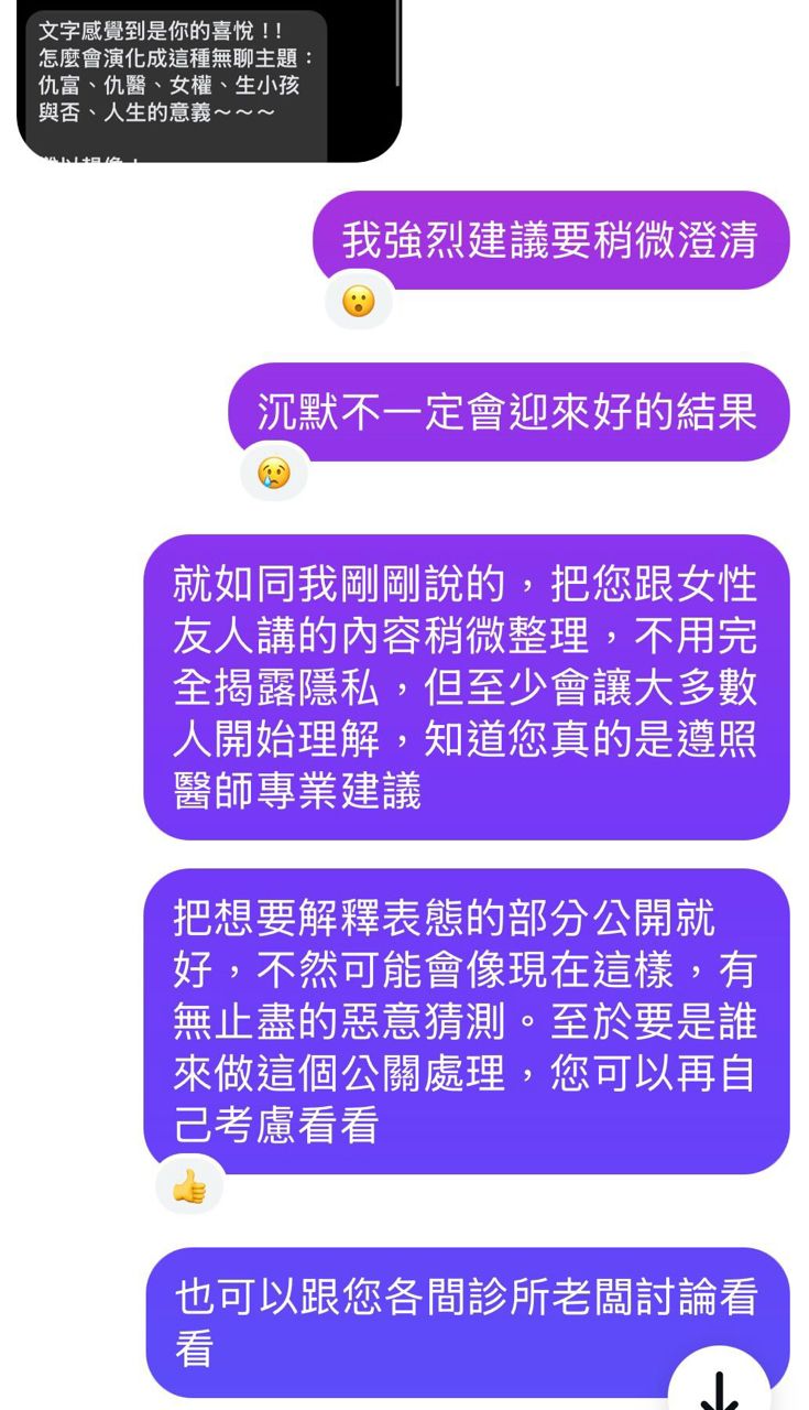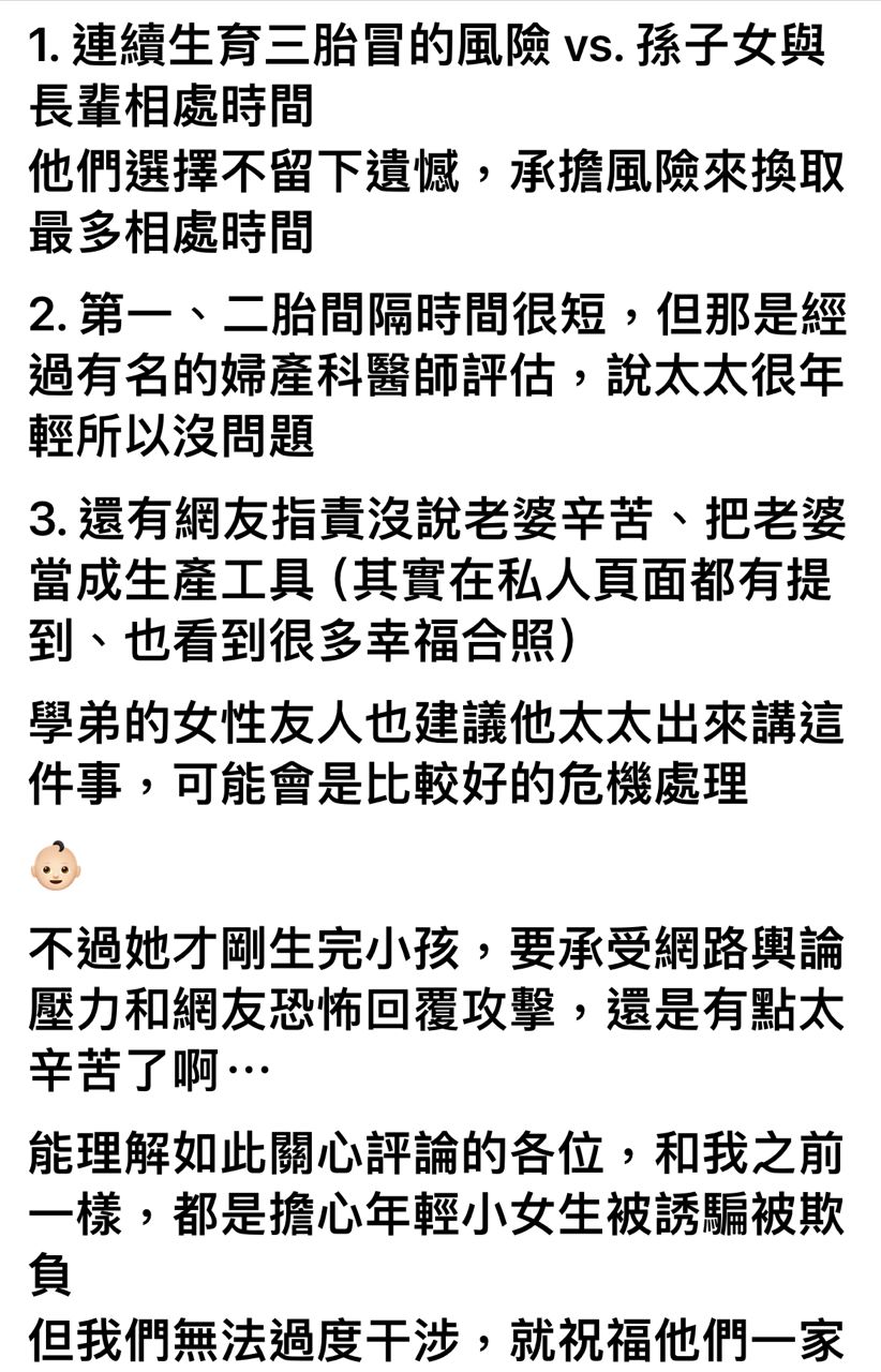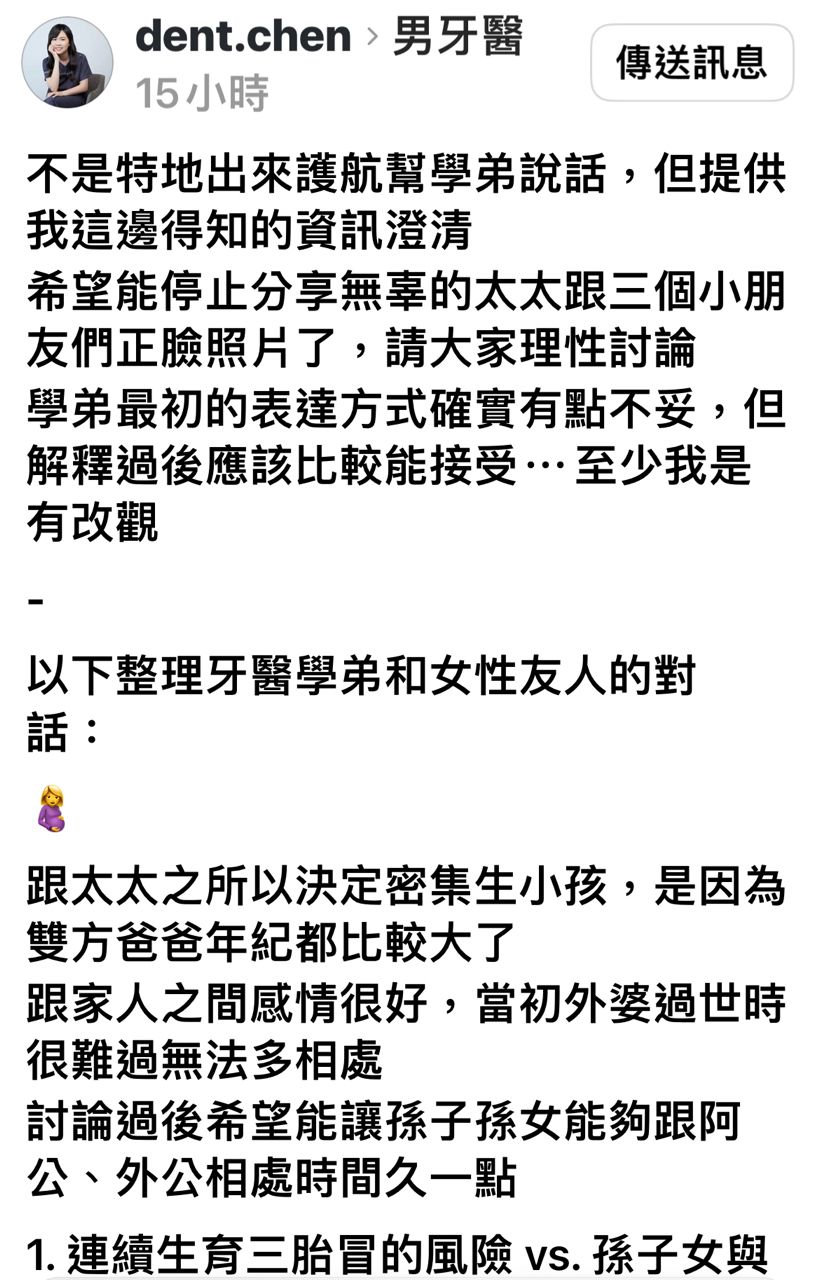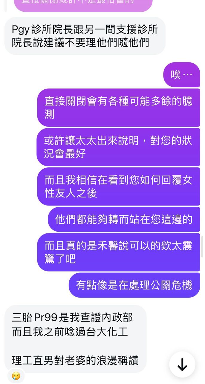 → arbteiff: 這群人當初自己選不婚不生的,現在看到有人選不一樣的就在那道德魔人。支持醫生一家不回應就好。5F 111.81.146.131 台灣 11/25 13:15