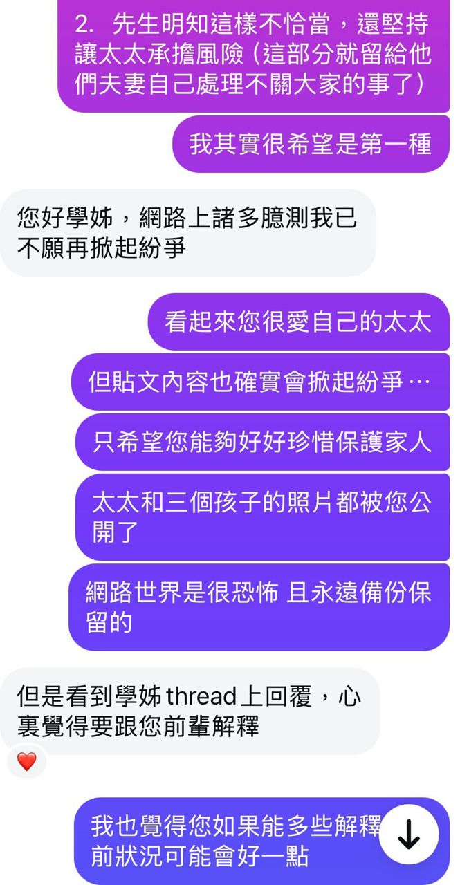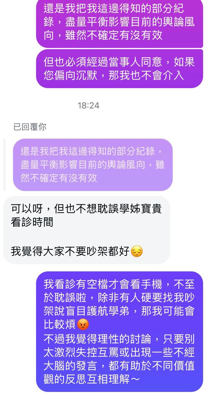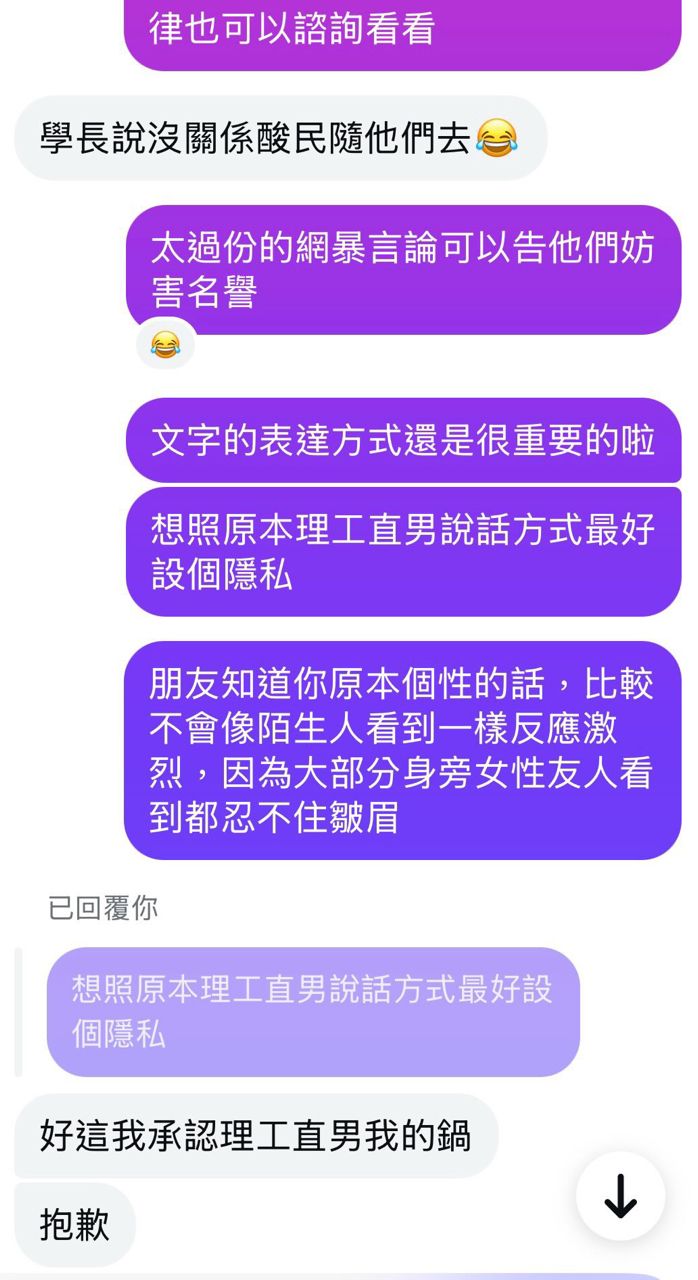 : 他的學姊私訊他然後問到了前因後果