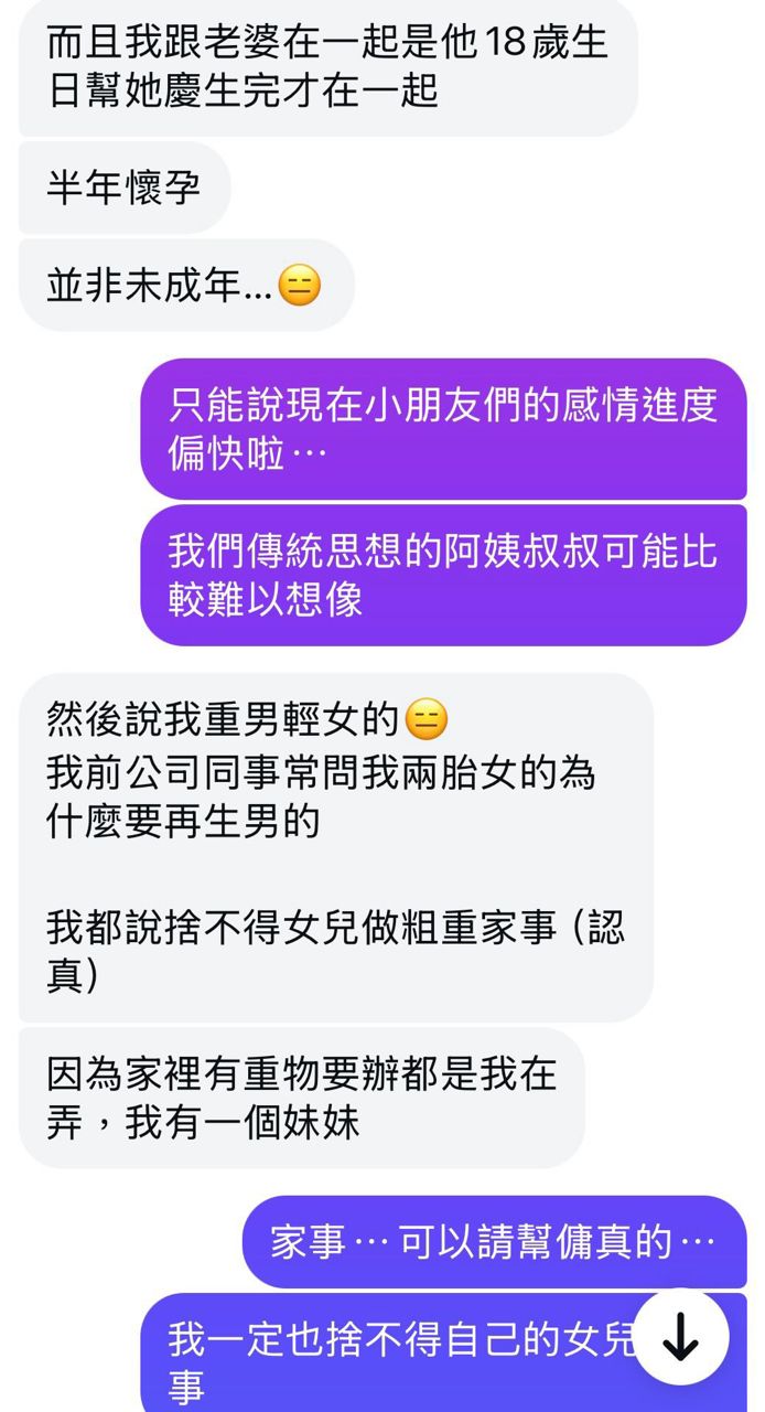 : 大概有 1. 十八歲生日才在一起 2. 爸爸媽媽老了想看孫才生那麼快.3.醫生都說可以4.