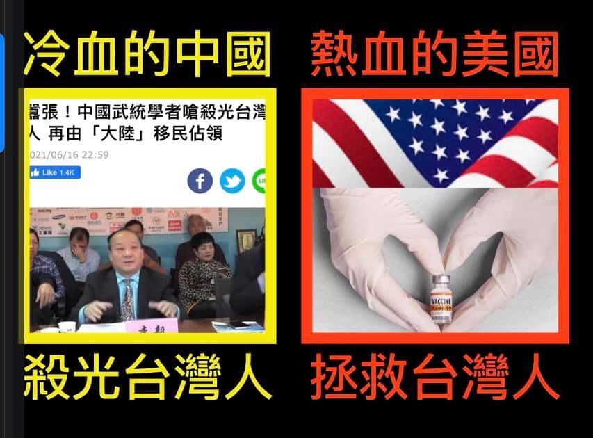 圖消滅中華民國主權、沒收台灣人自由等破壞現狀的霸權作為,拒絕臣服為「中國台灣」
