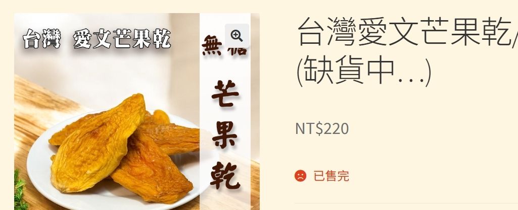 忽然想吃,台灣芒果乾,我比較喜歡無糖的,所以不好找