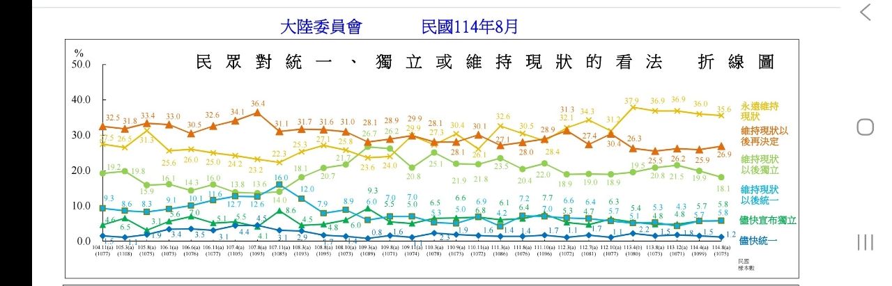 看看另一個陸委會長期做的民調