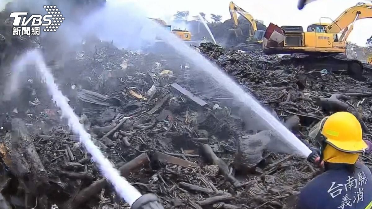 全台接連5垃圾場火警!台南2件,義消前線「雙腳陷泥濘」。(圖/TVBS)