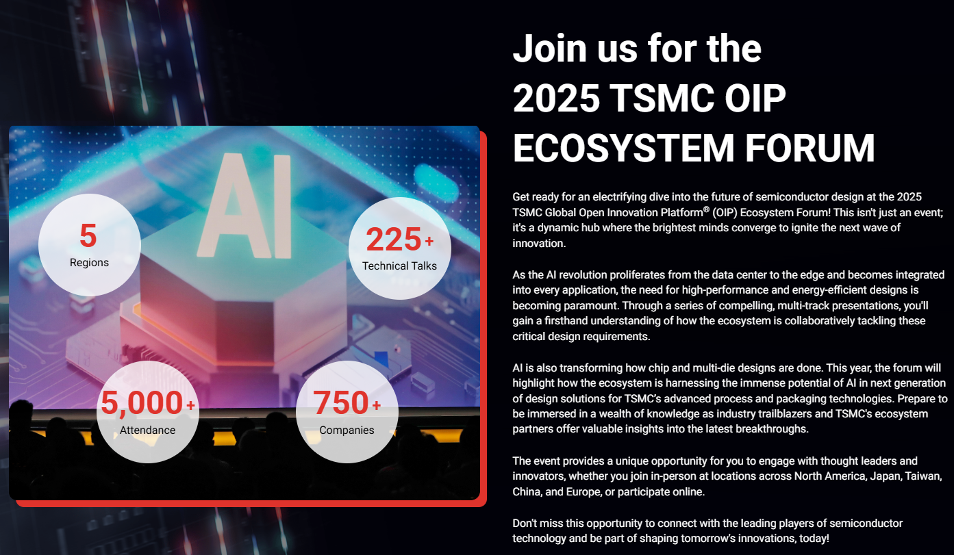2025年台積電OIP生態系論壇自9月24日起,先後在矽谷聖克拉拉、日本東京、台灣新竹、