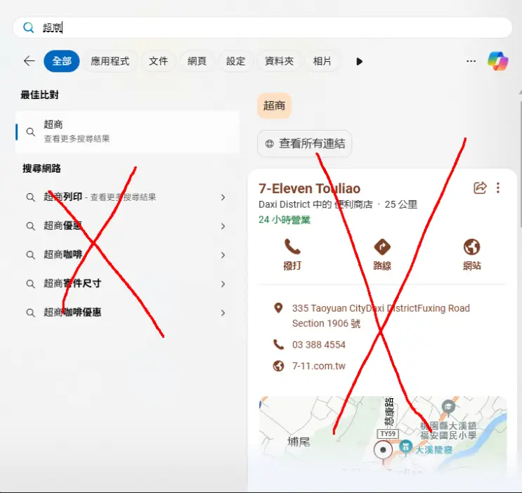 把全部都關掉,也沒辦法讓win內建的搜尋不要出現網路內容。