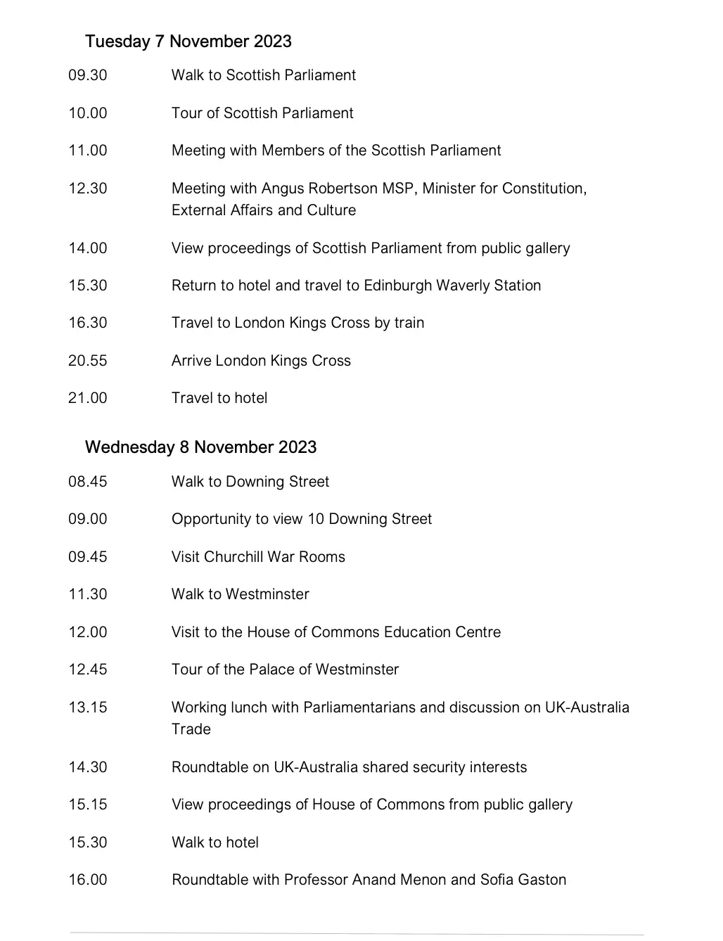 然後對比澳洲代表參訪瑞典和英國的11天行程