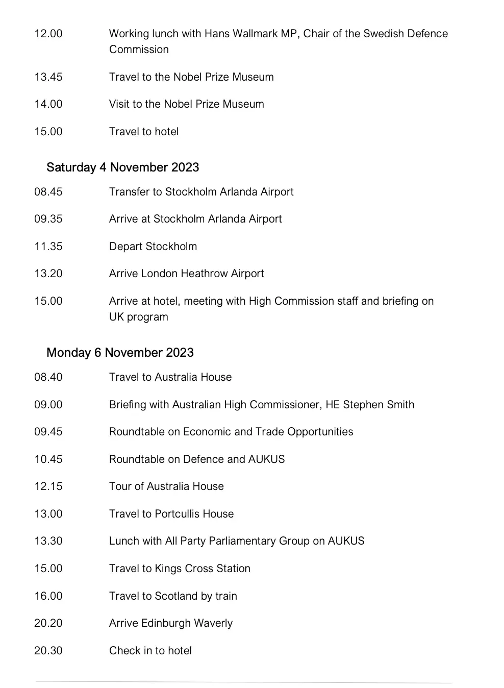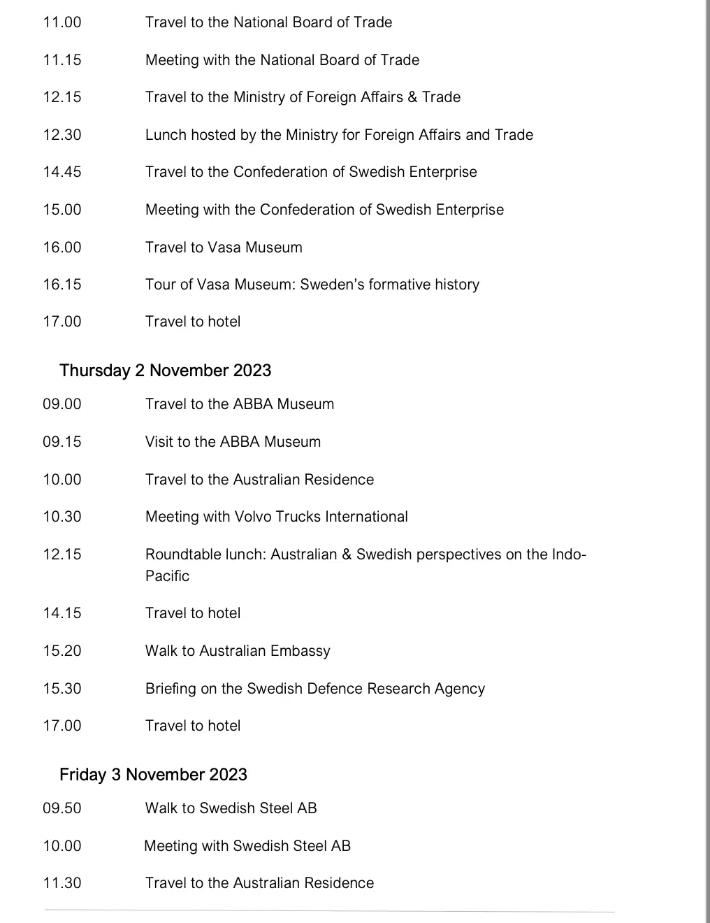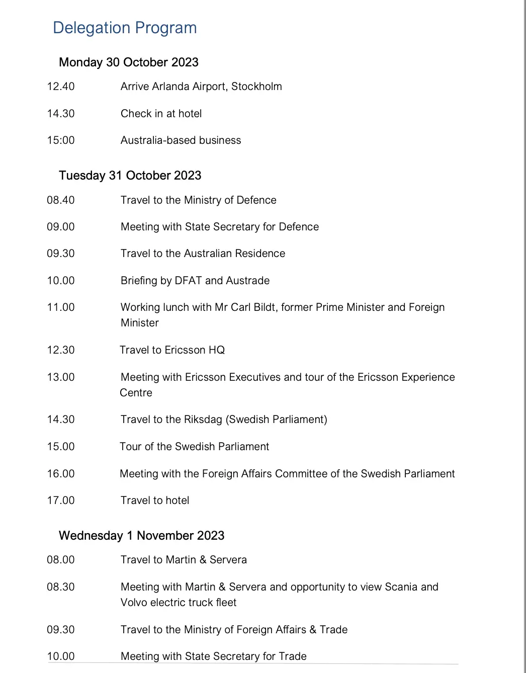 15:00 立刻安排「Australia-based business」會面(跟在瑞典的澳洲企業談)