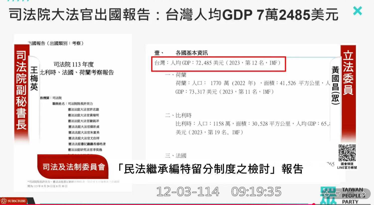黃國昌委員質詢司法院副秘王梅英,質疑司法院長訪歐的行程過度寬鬆 (09:16:47開始)