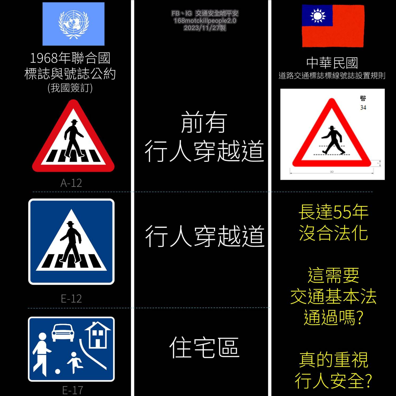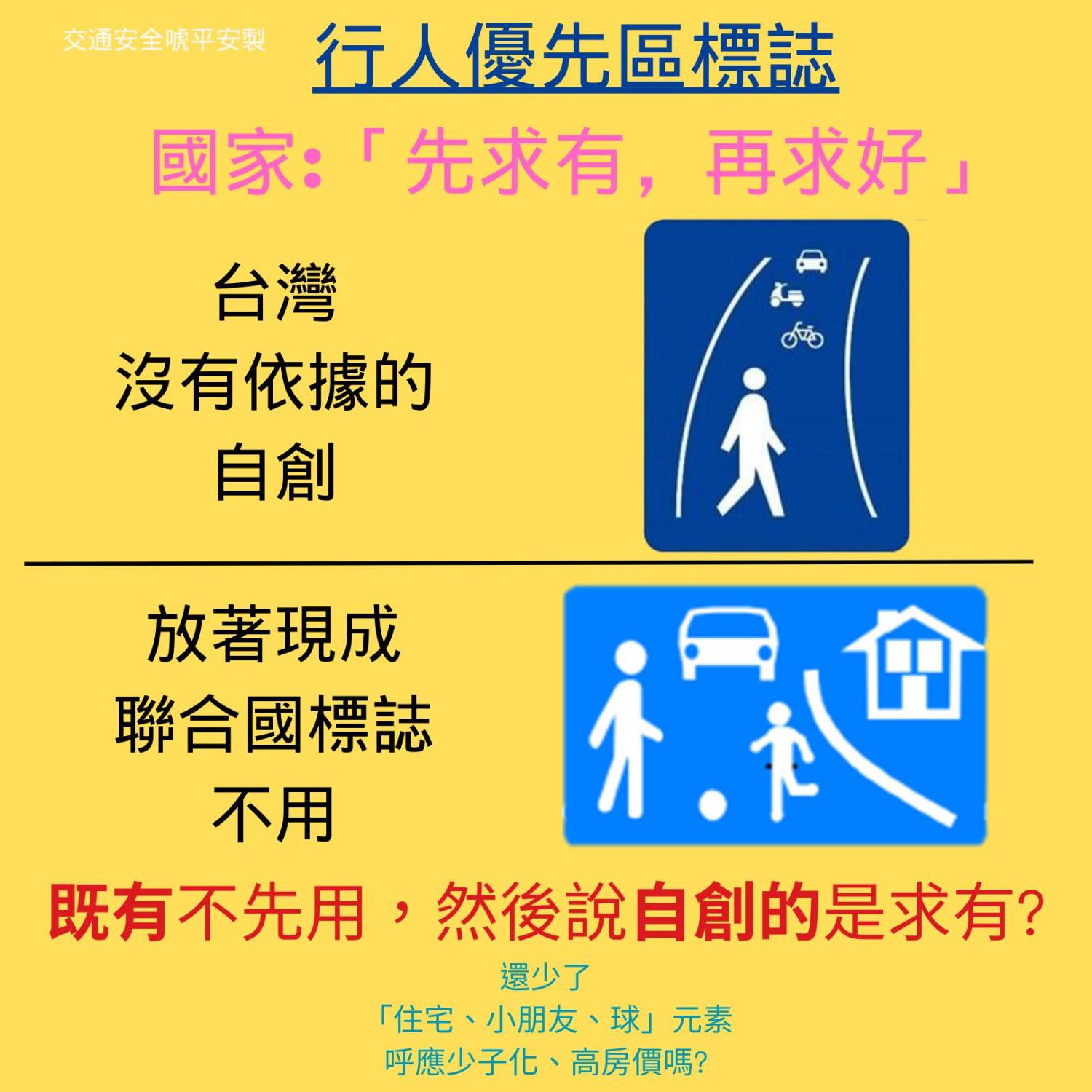 最後12月交通部推了自創的行人優先區標誌 硬是要跟聯合國不同