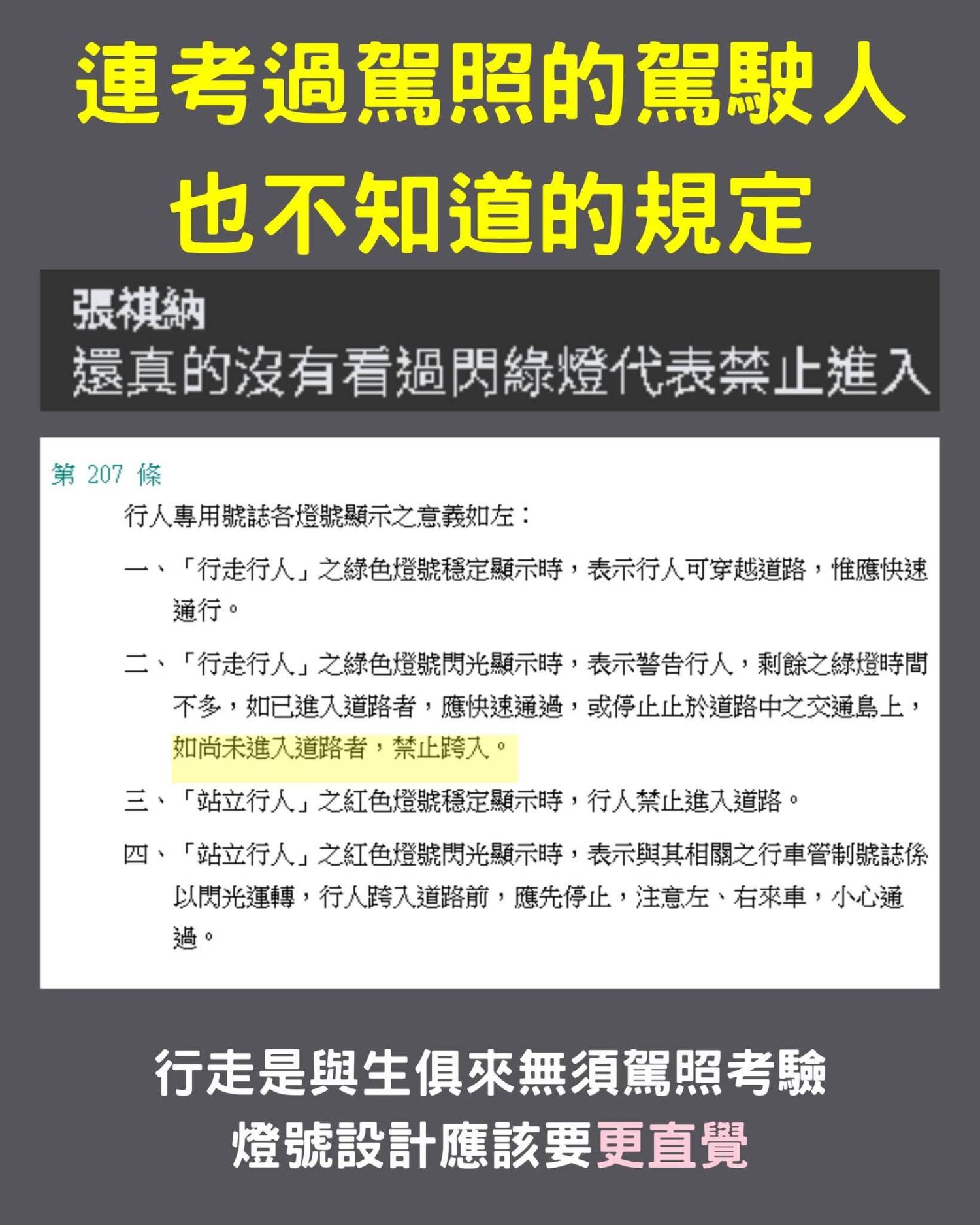 例如最近的新聞「行人看到小綠人開始閃爍 卻當場被警察攔下,開了一張500元的罰單」