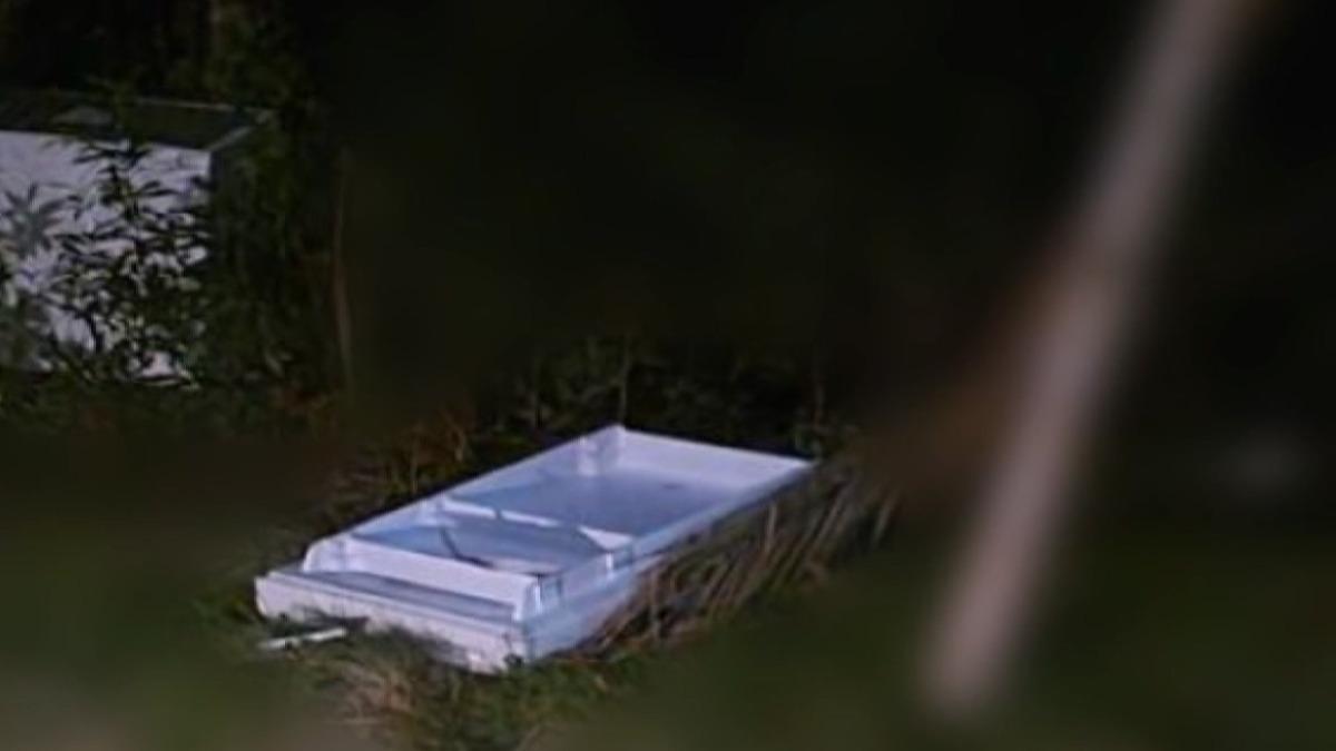 體卡在草叢中,冰箱門則分解掉在旁邊的草皮上,所幸事件沒有造成人員傷亡。