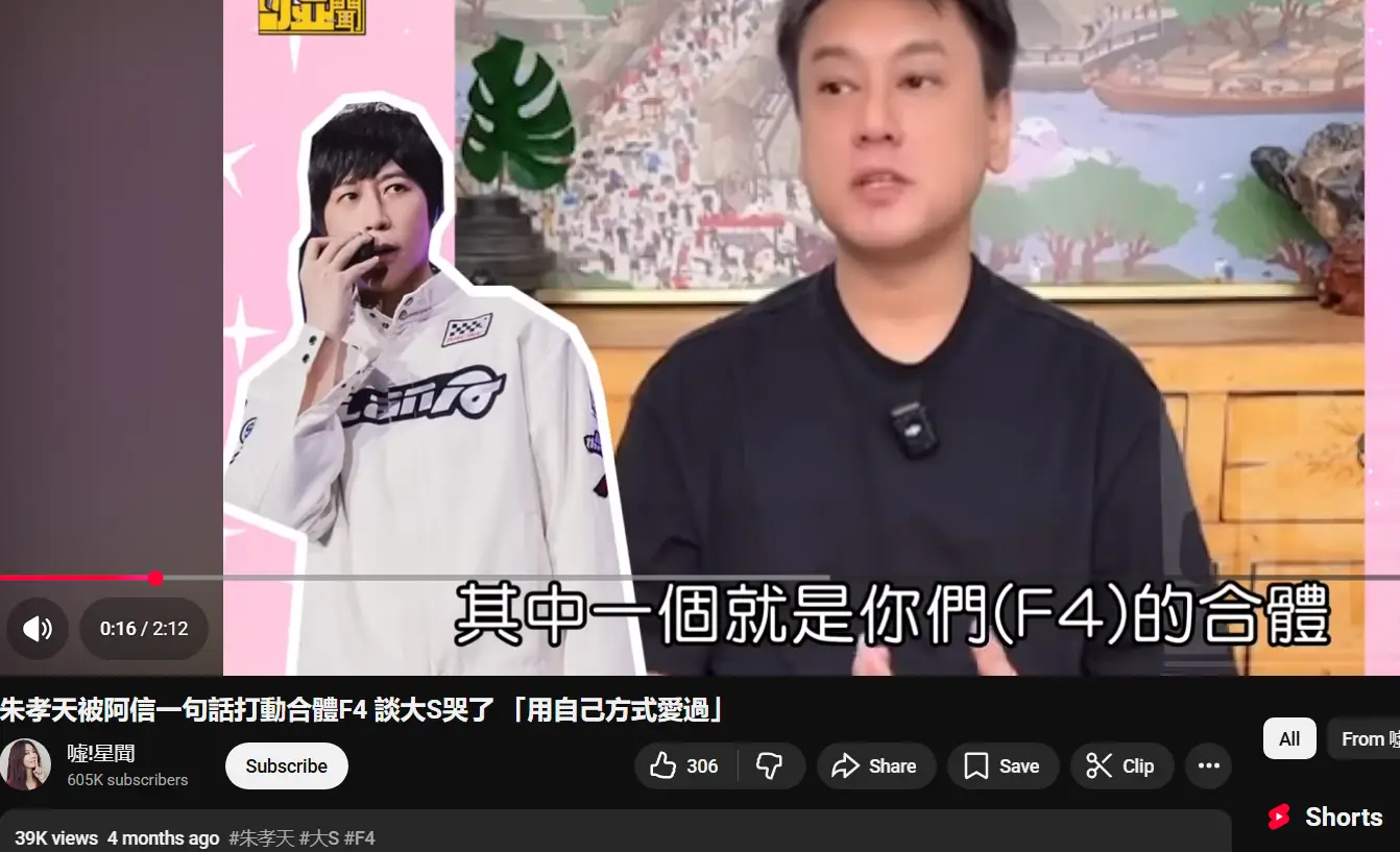 Re: [新聞] 朱孝天曝F4破局內幕!喊話相信音樂停止
