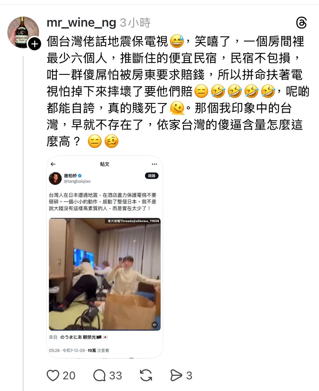 Re: [新聞] 地震狂搖!台灣客「死守電視」影片爆紅
