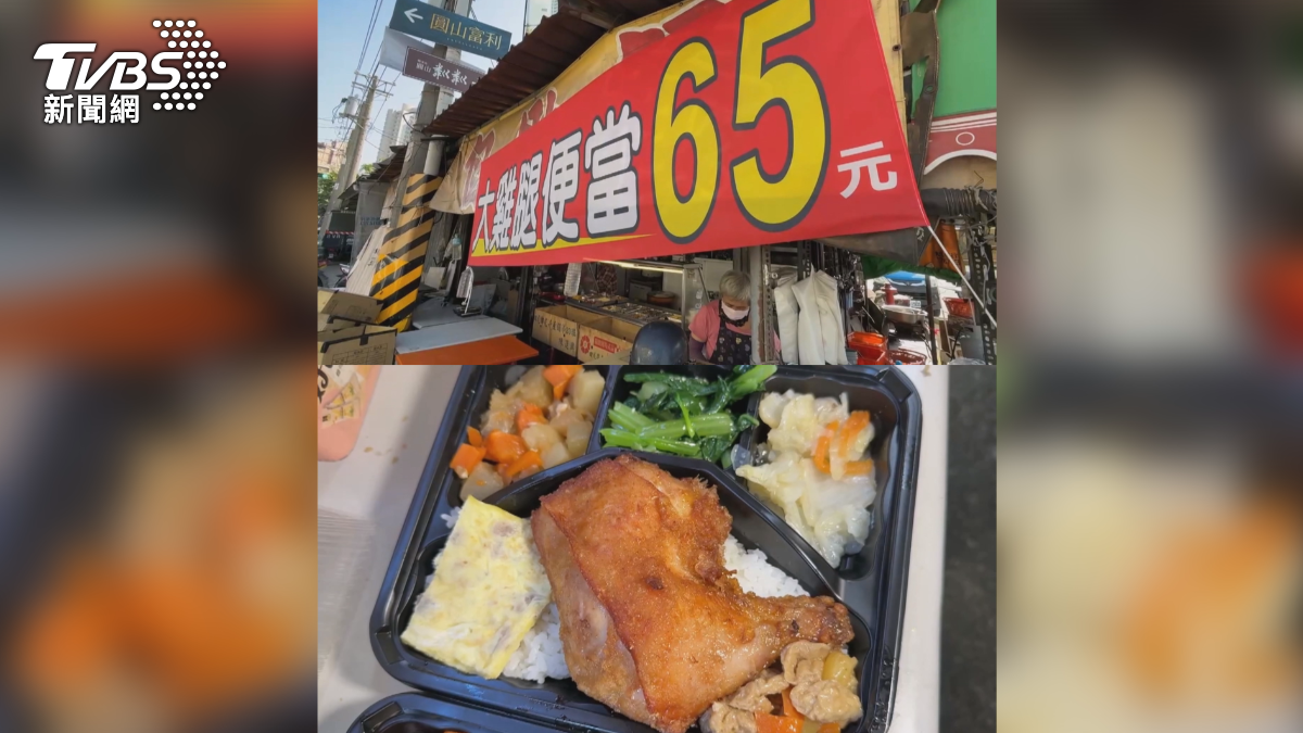 便當盒,還附有三格可自選的配菜,整份大雞腿便當只要 65 元。店家在當地經營已長達