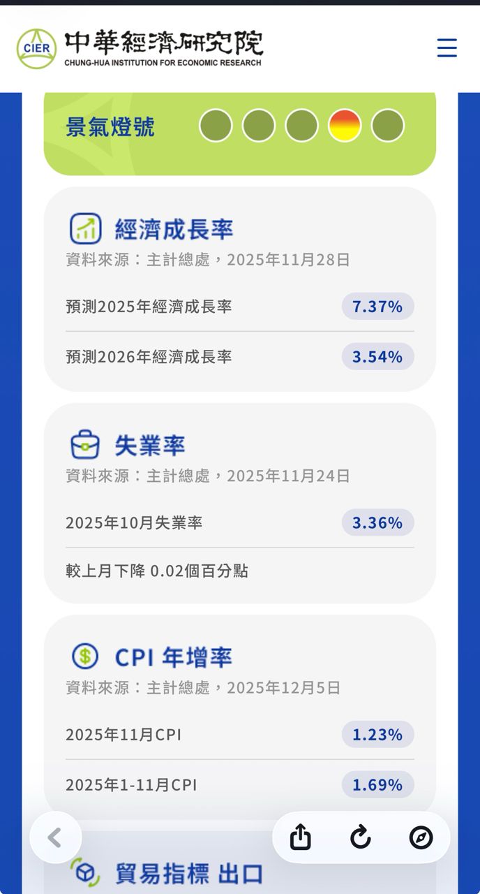 根據主計總處資料,2025年第2季經濟成長率為7.71%,較2025年8月初步統計下修0.30個