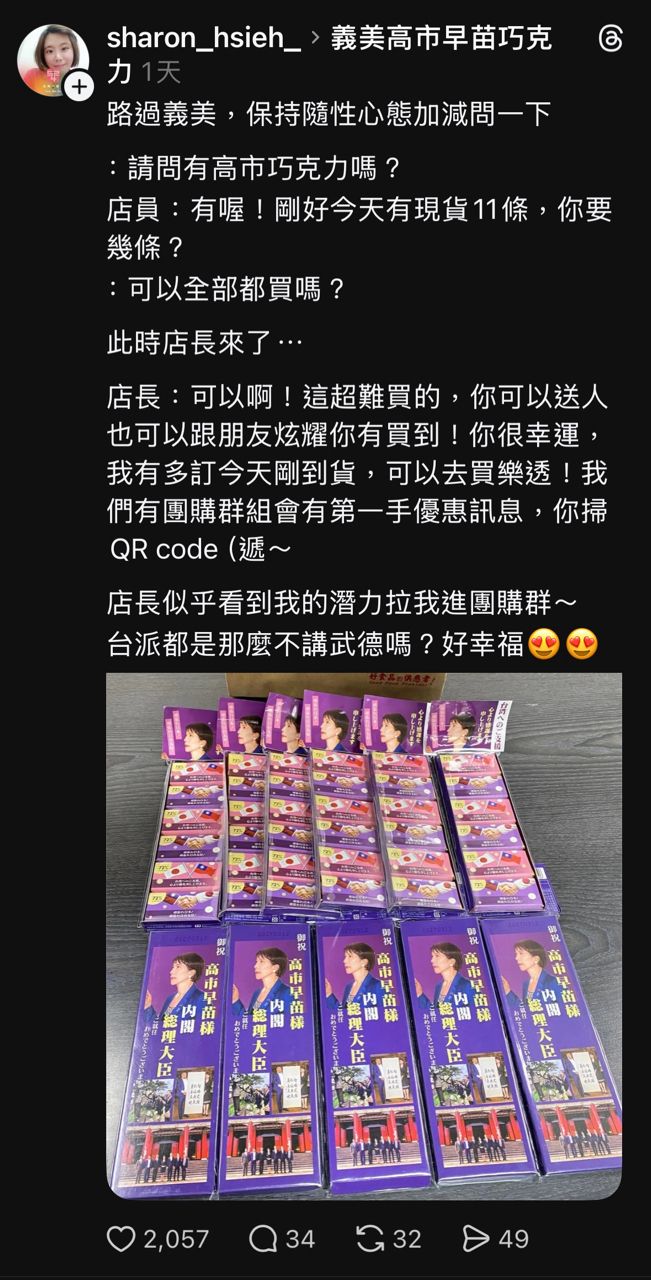 [問卦] 義美已經可以買到高市早苗巧克力了