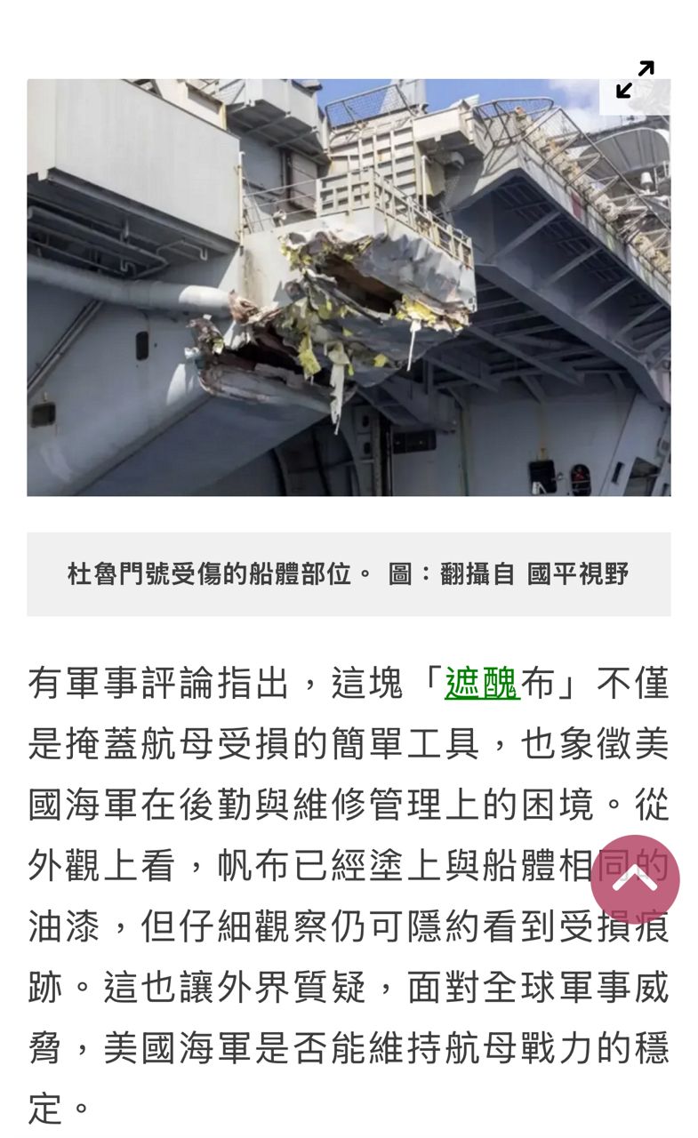 杜魯門號被撞破一個大洞,過了10個月還沒維修好,也沒法維修(前面還一堆排隊的,船