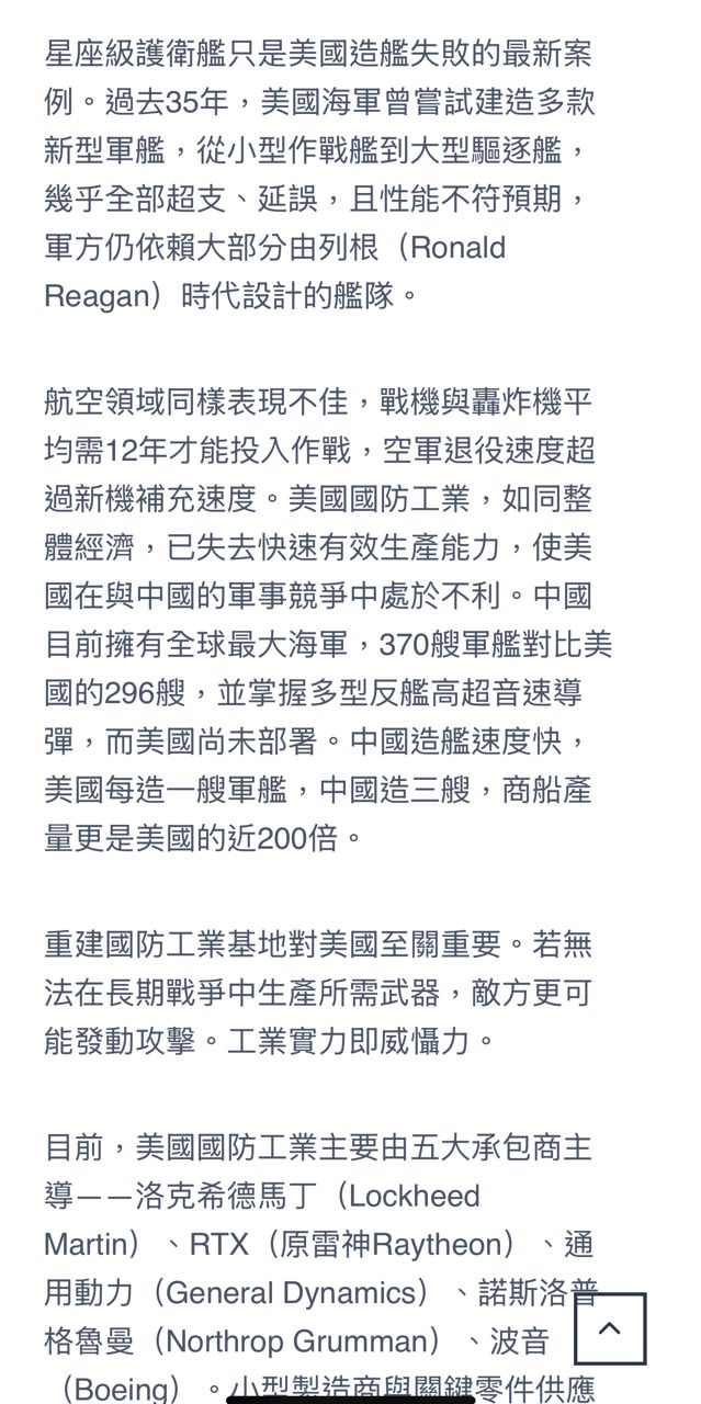 美軍現在所有的拉垮來自於製造工業能力不行