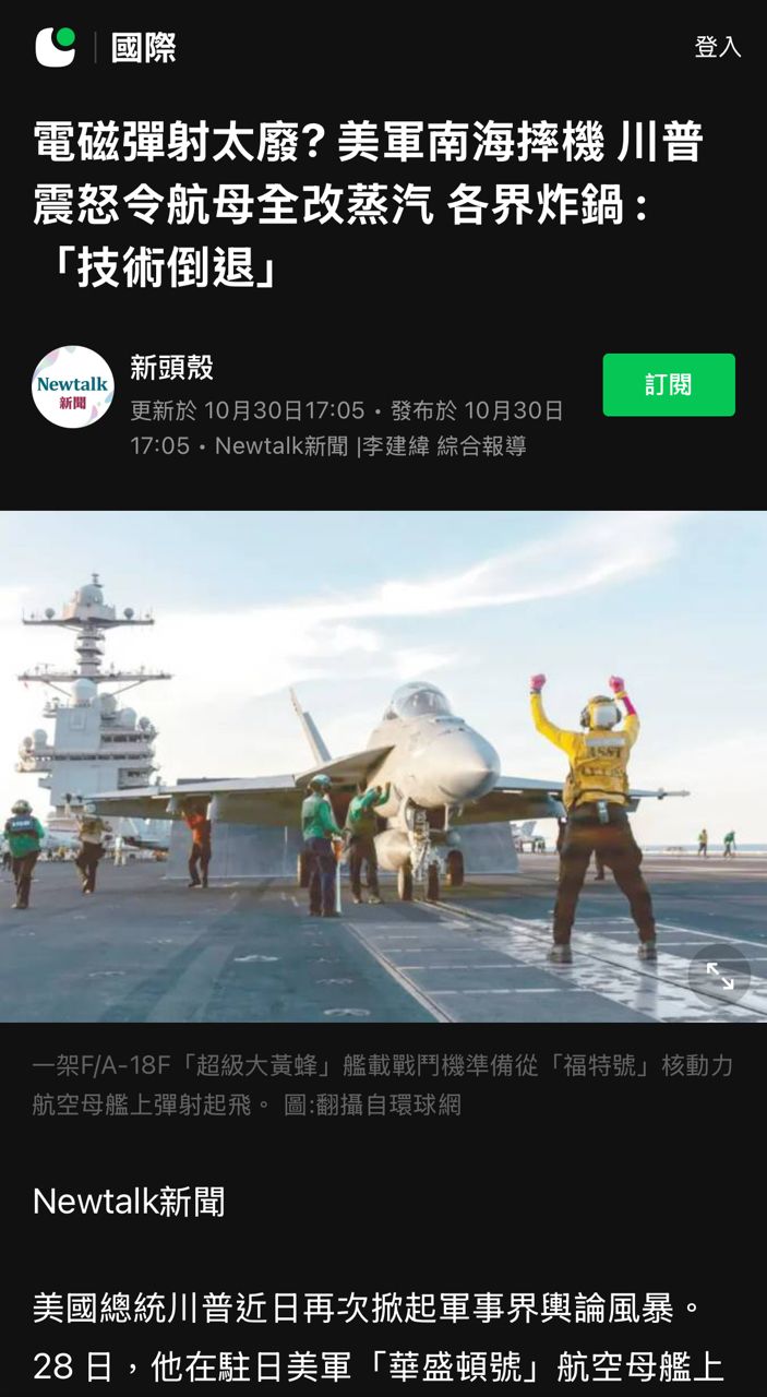 航母:電磁彈射彈不了F35, 懂王要求改回蒸汽彈射