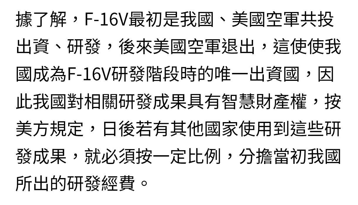 這批戰機,都是透過美國政府的「外國軍事銷售」(FMS)流程進行採購,並已完成最終