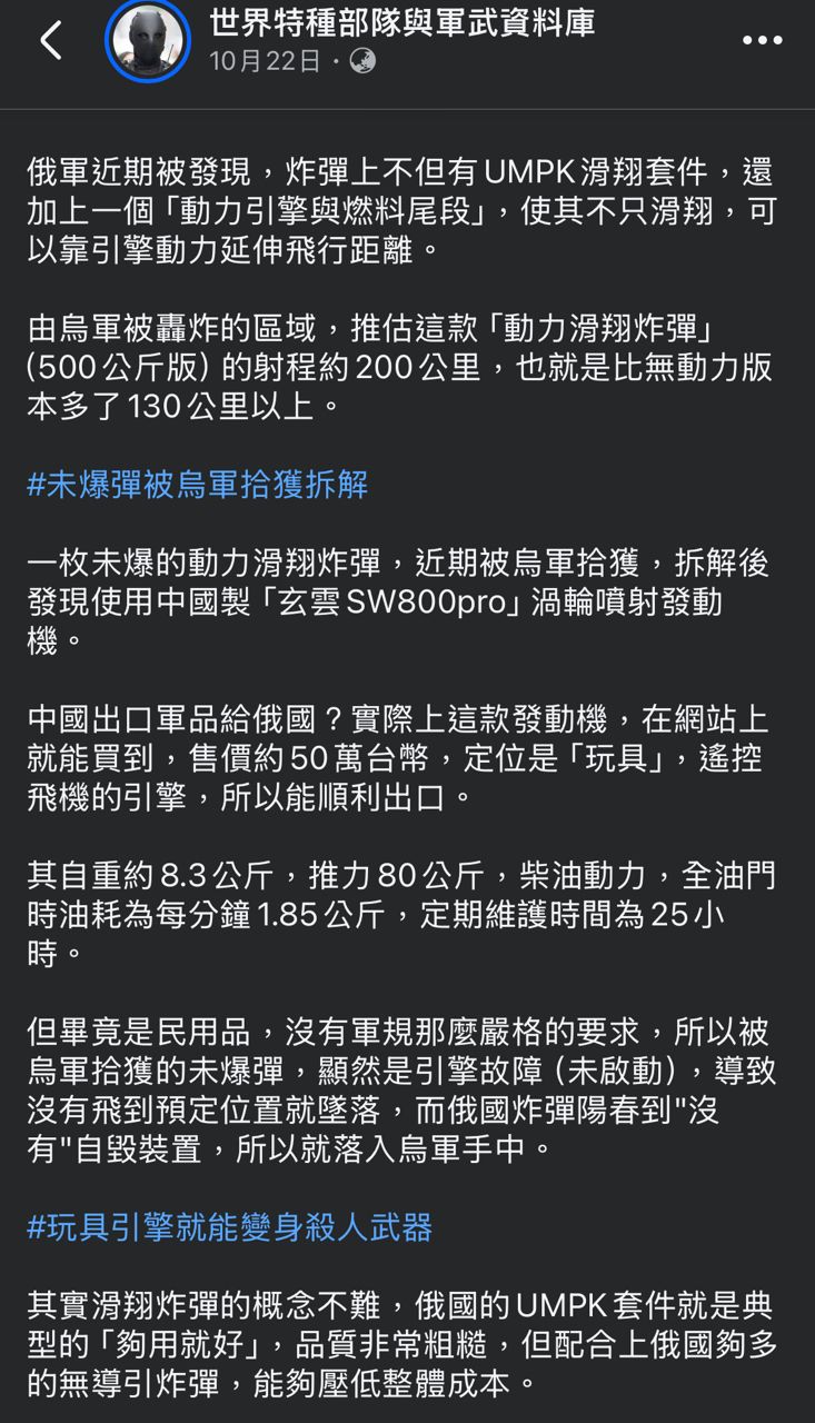 內容是說烏俄戰場撿到滑翔炸彈的殘骸