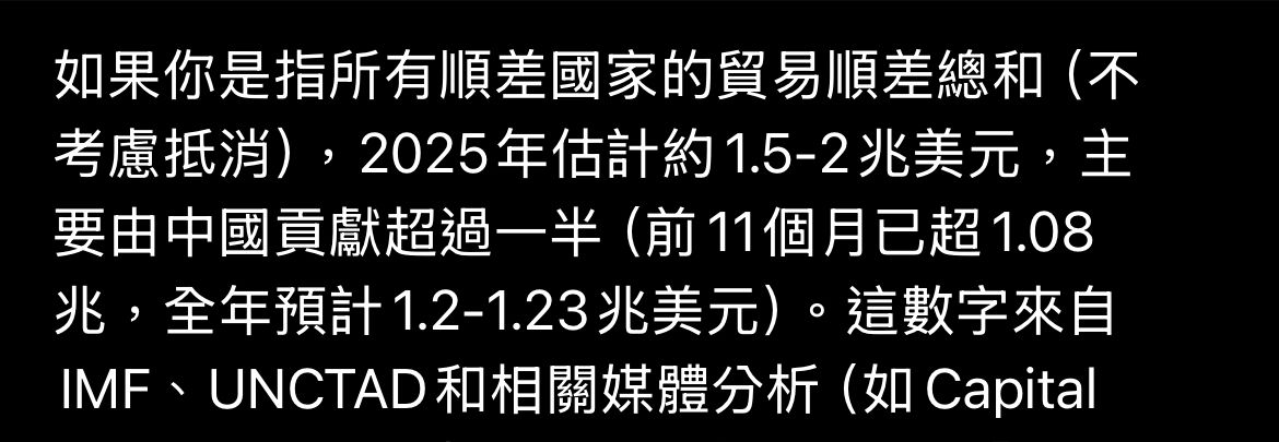 但我跟你說全世界有順差的國家(不考慮抵銷)加總是2兆美元,你可能就有概念了