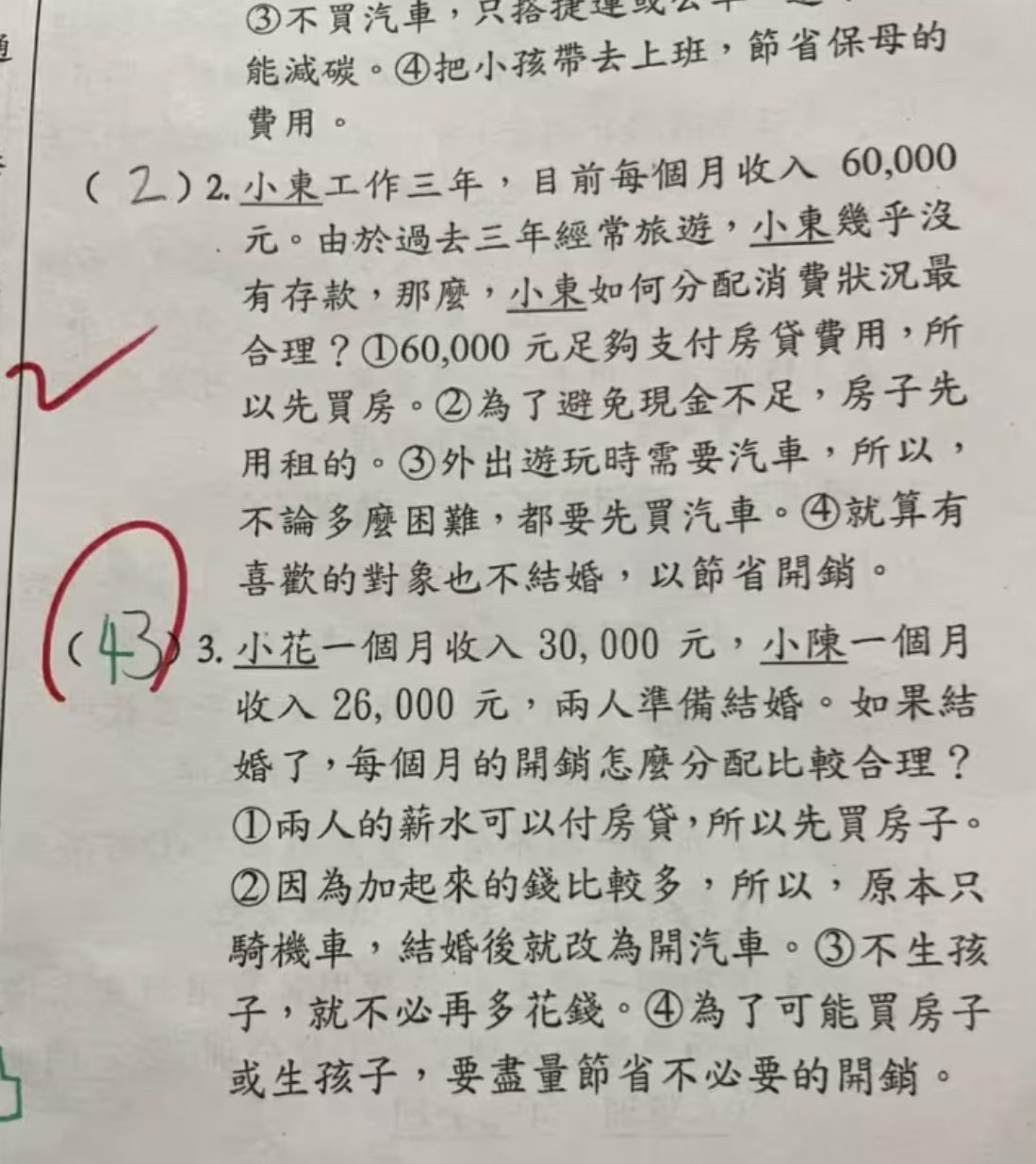 2. 因為加起來的錢比較多,所以可以從騎機車改成開車