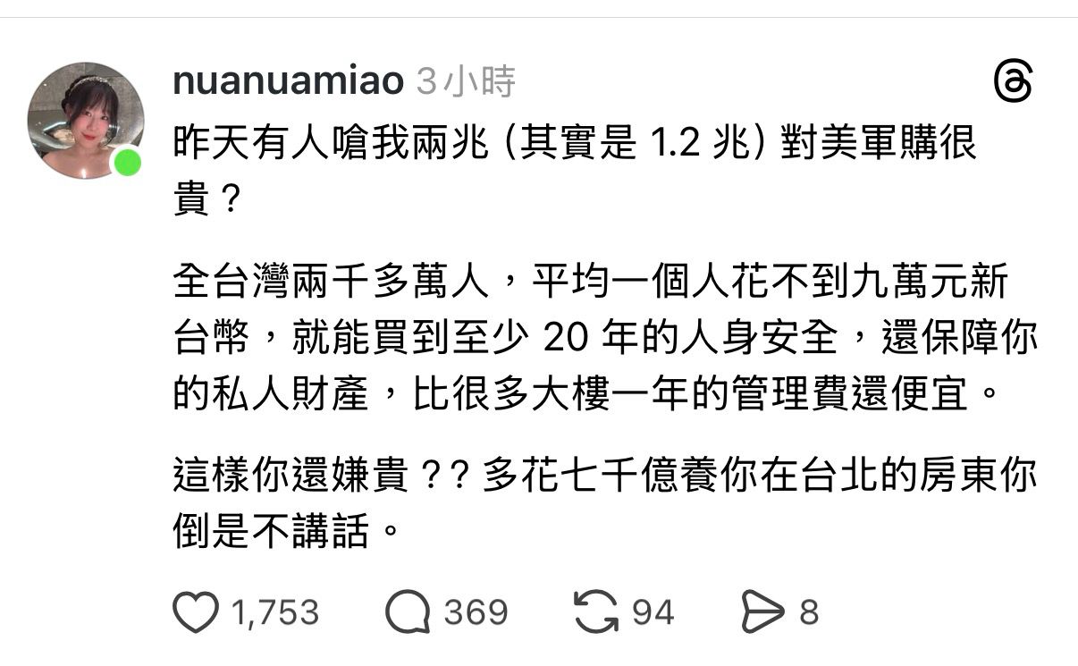 [問卦] 脆:1.25兆可以換台灣20年的安全