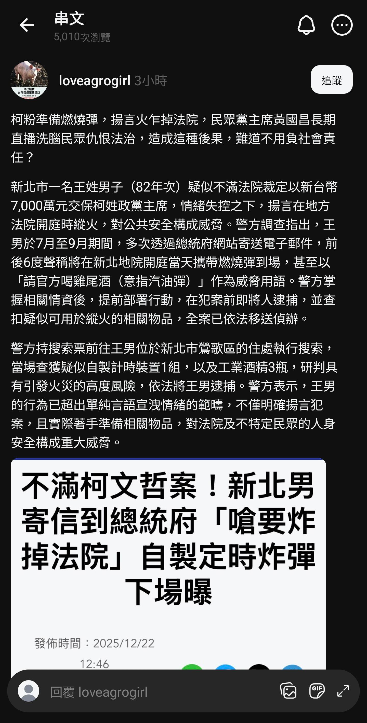 Re: [新聞] 不滿柯文哲交保!鶯歌男自製定時炸彈