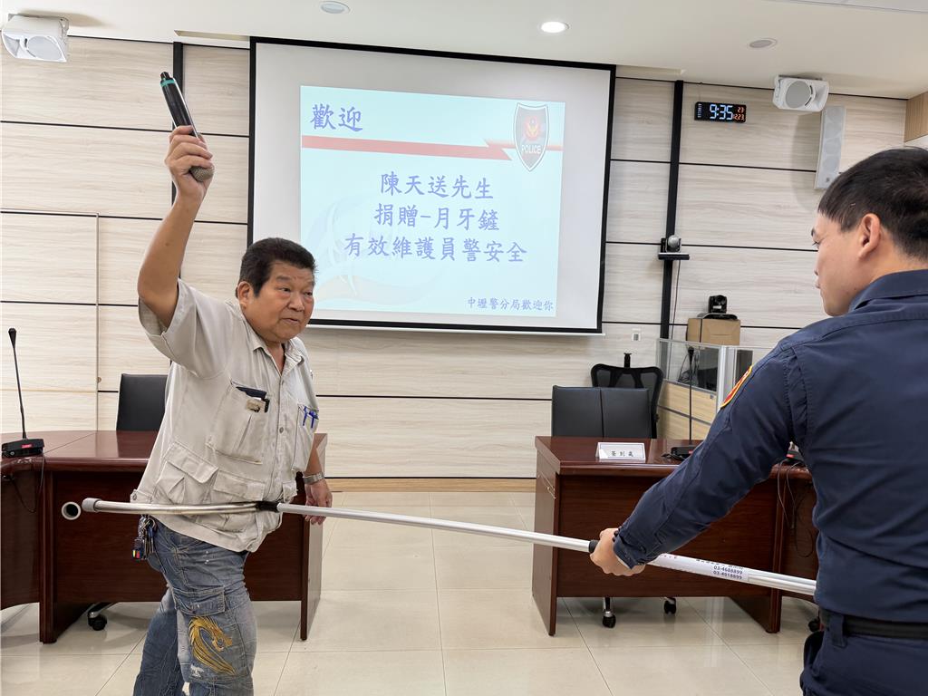 面臨的風險,為提升員警防暴能力,主動致贈10支自行研發之月牙鏟,支援警力執勤安全