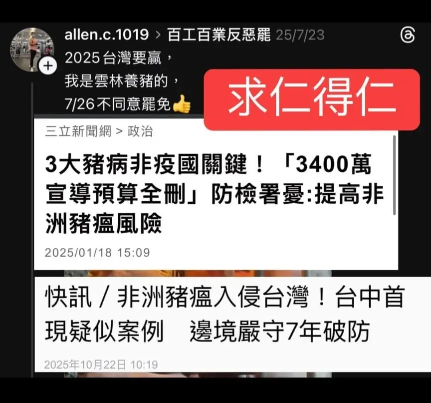 [討論] 為什麼台中能驗出天選之肉卻擋不住豬瘟? - HatePolitics 板