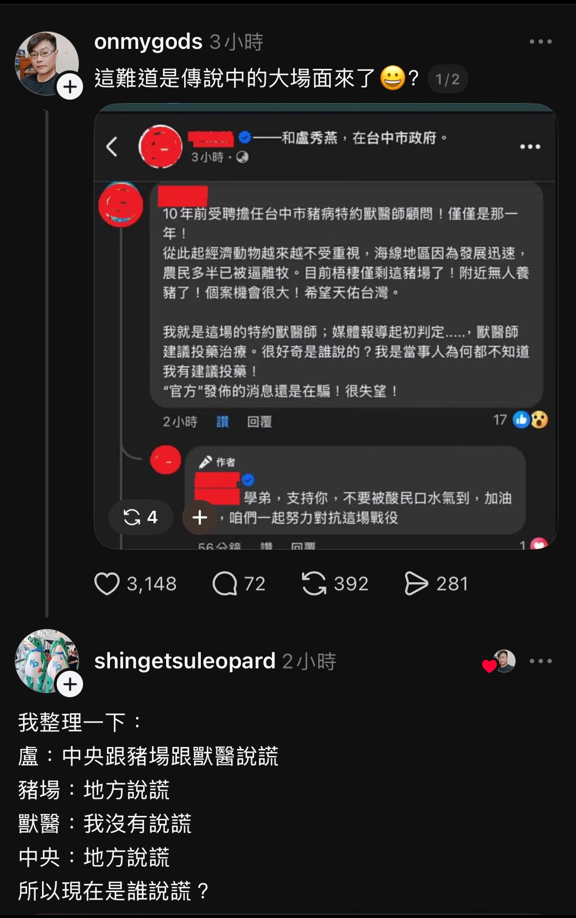 [討論] 台中豬瘟的獸醫說官方還在騙 - HatePolitics 板