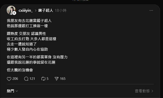 geordie 去花蓮下鄉挖泥一堆正妹在那邊做志工邊交流,宛如一場沒有主辦的社會交際場合 啊不是想要有妹子,想要有人脈, 那邊就有免費的機會讓酸酸認識認識 結果不去就算了,還在那邊嘴碎, 是要把東西放在嘴邊才會吃4