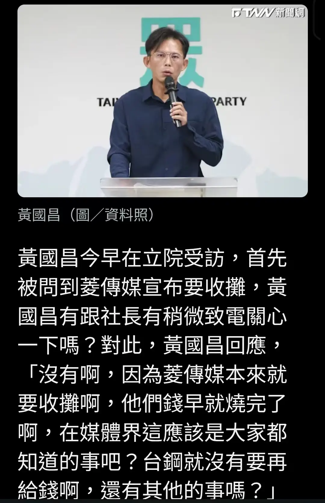 [討論] 黃國昌:菱傳媒本來就燒完錢要熄燈了