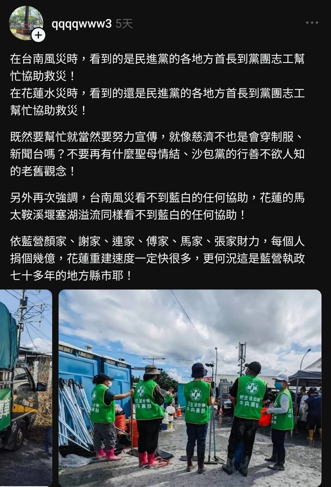 : 政黑仔的世界只有藍綠白 幫忙災民還