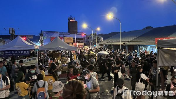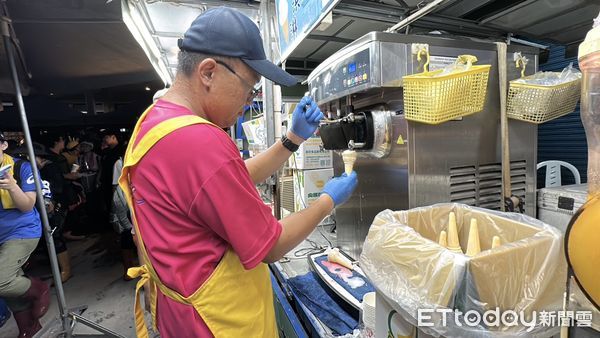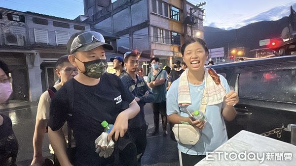捲餅、冰淇淋等,宛如變成「小型夜市」,今天也有來自台南的志工,特地在場發送蛋黃